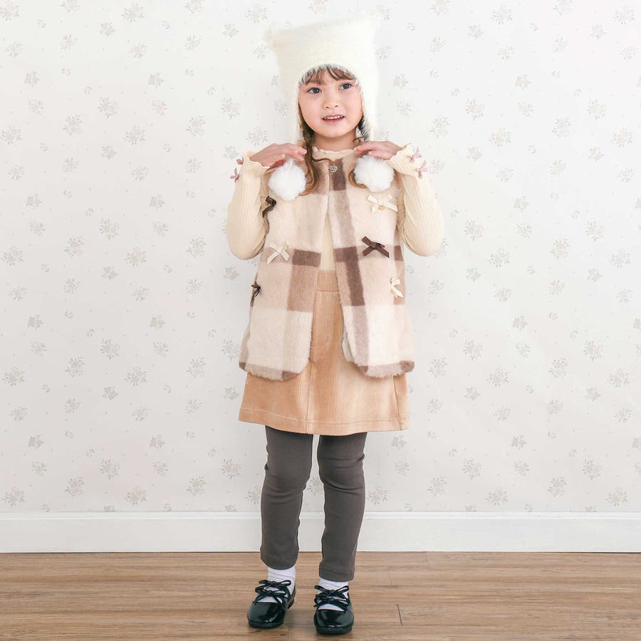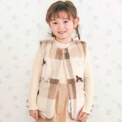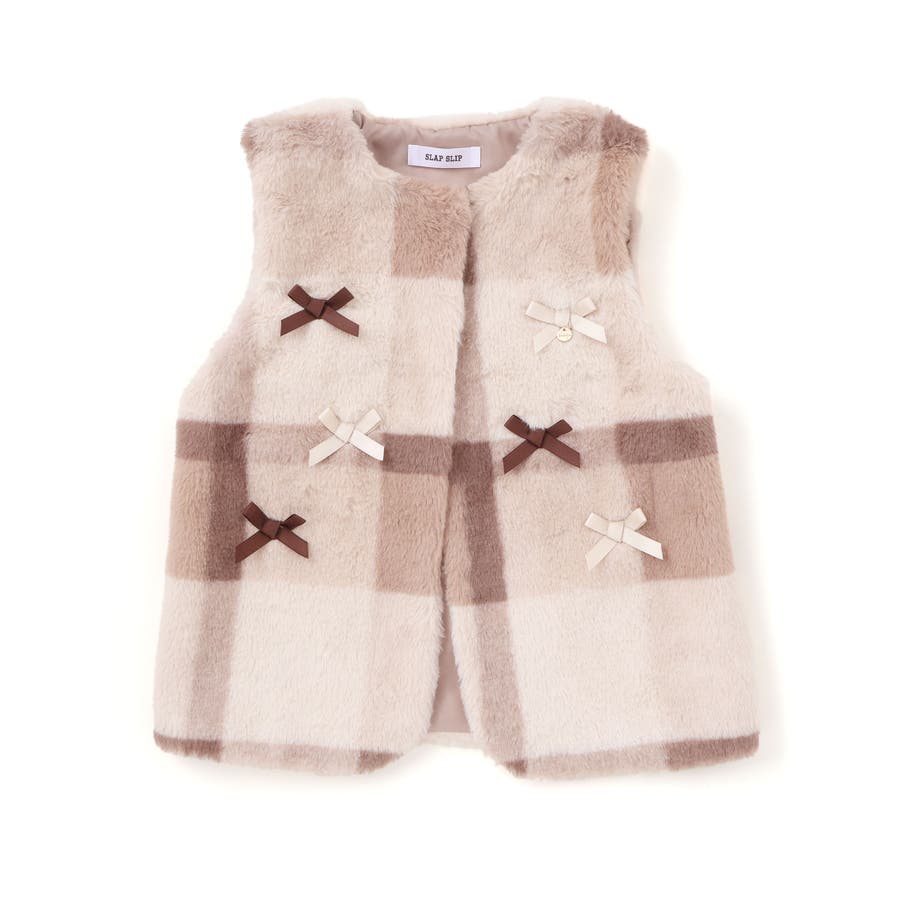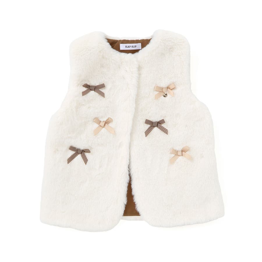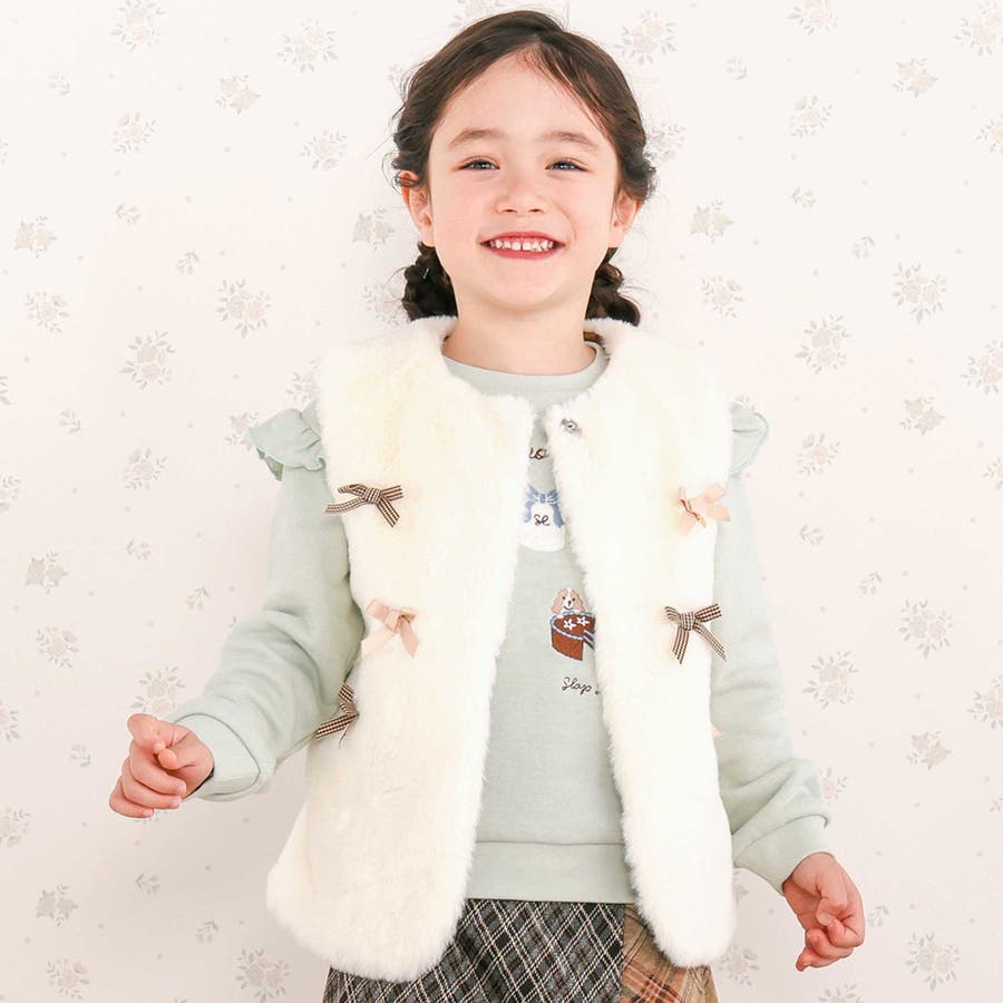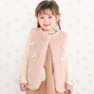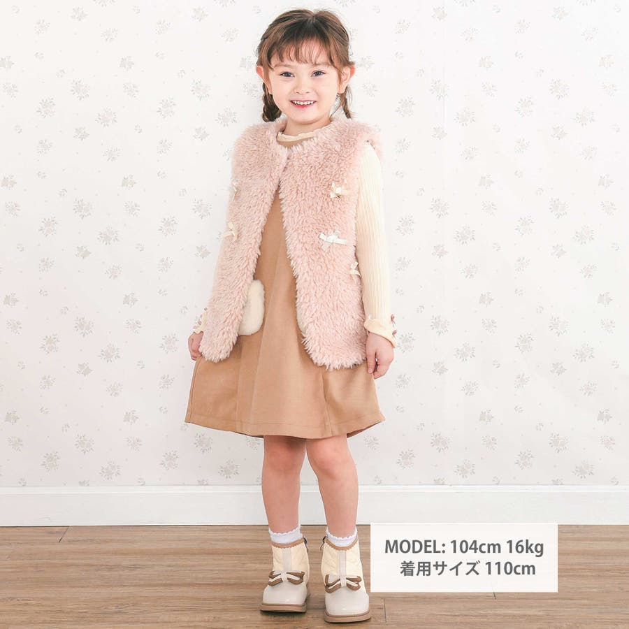 リボン付きワンスナップボアファーベスト(80~130cm)