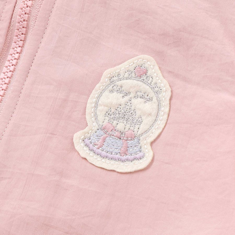 【表:キラキラがちりばめられた「Twinkling days(きらめく日々)」の刺しゅう/裏:スノードームのワッペン】