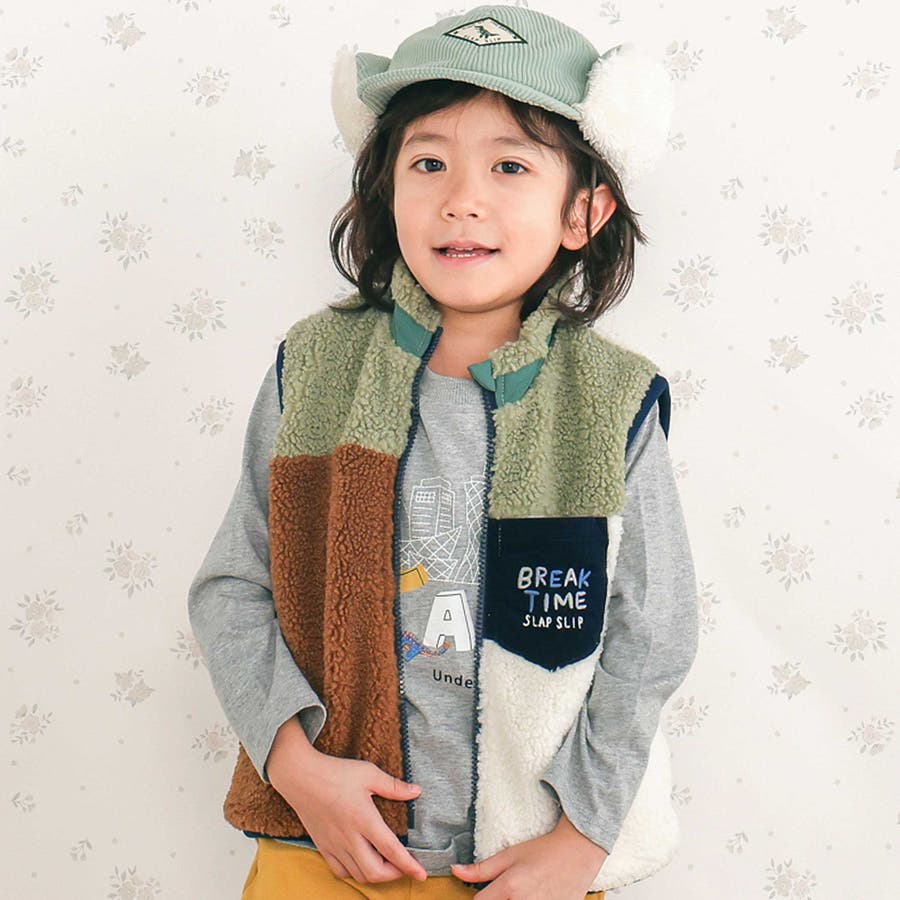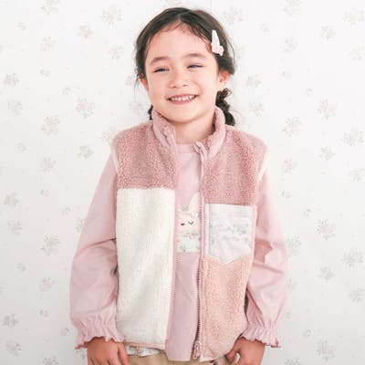 胸刺しゅうバイカラーリバーシブルボアベスト(80~130cm)