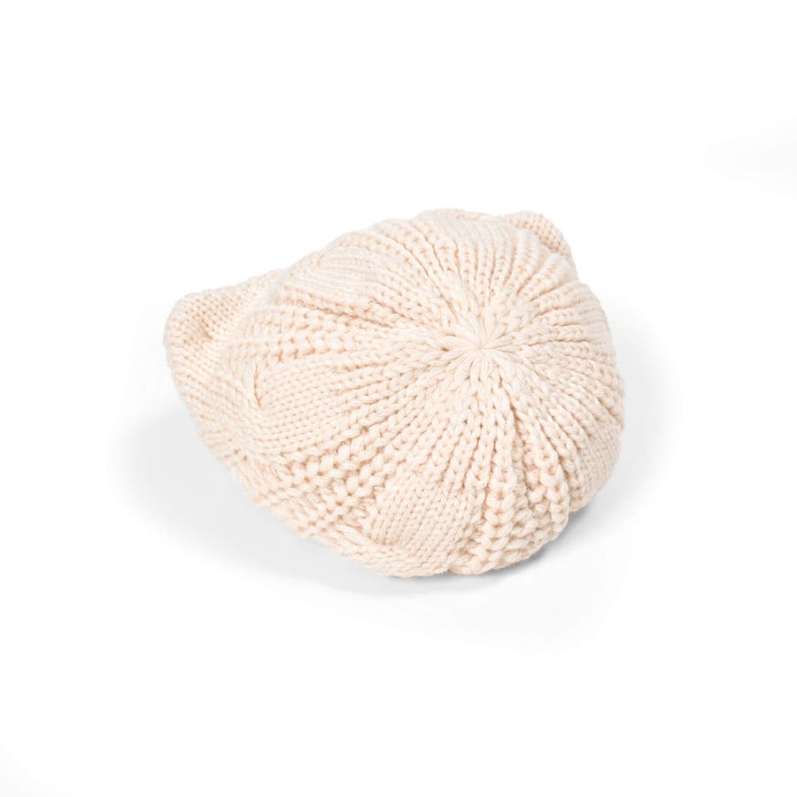 ウサミミネコミミケーブル編みニットベレー帽(48~55cm)