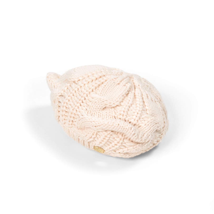 ざっくりと編まれた立体感のあるケーブル編みのベレー帽は、かぶるだけでいつものスタイリングをキュートにアップデート!