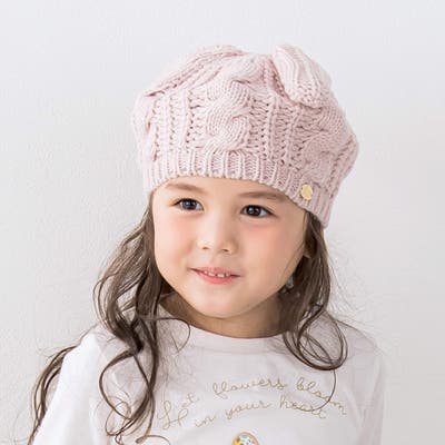 可愛い耳がついたニットベレー帽でお出かけが楽しくなっちゃうアイテムになっています。