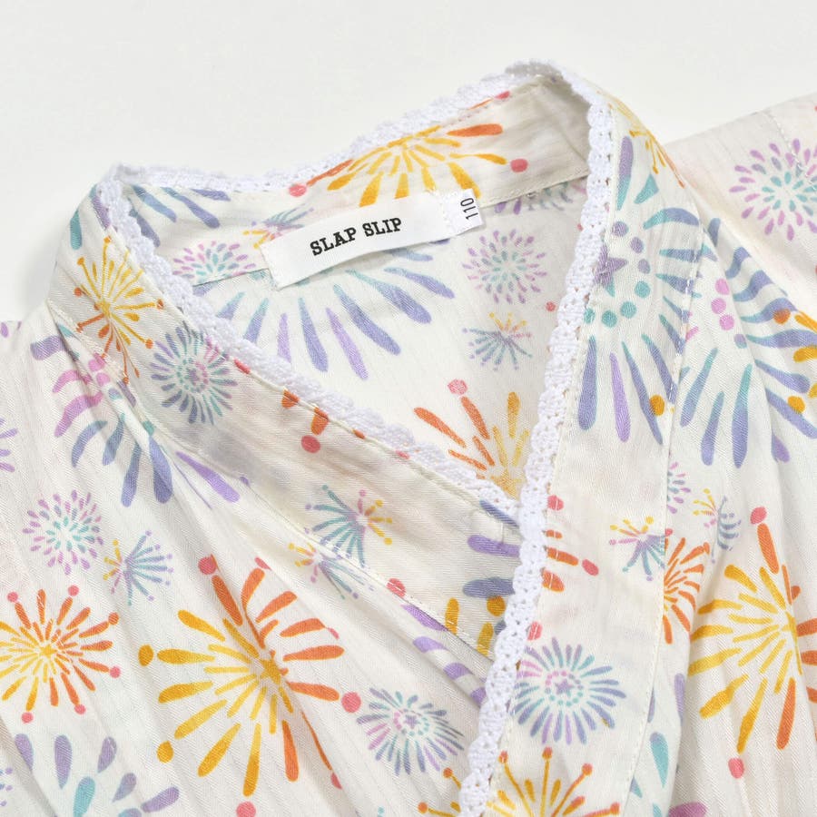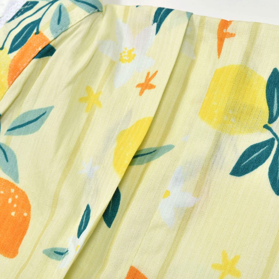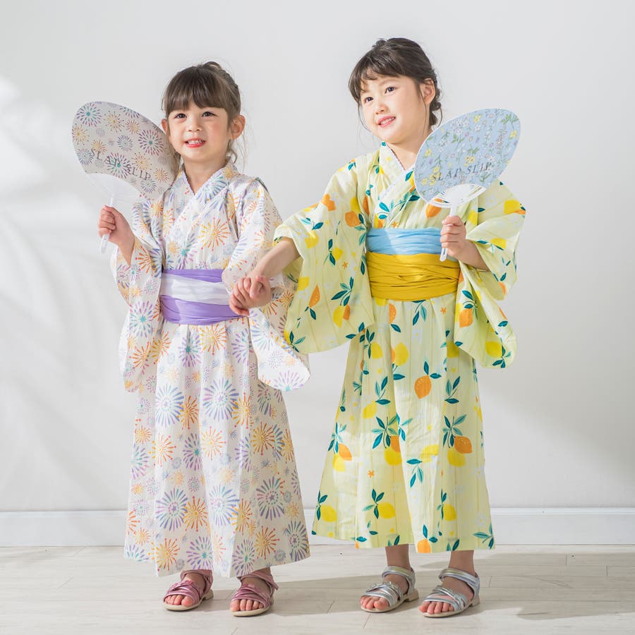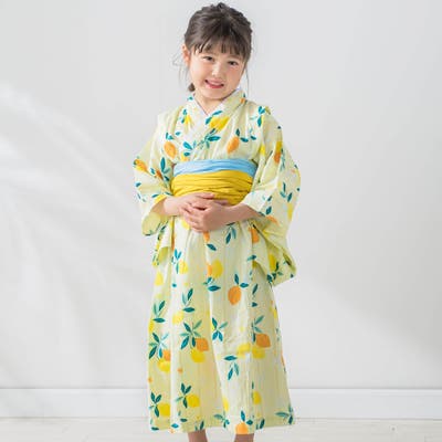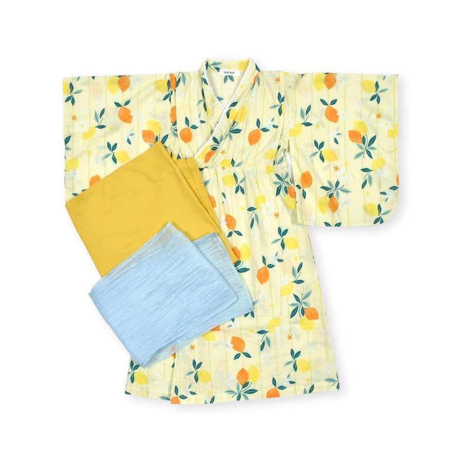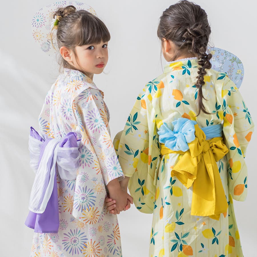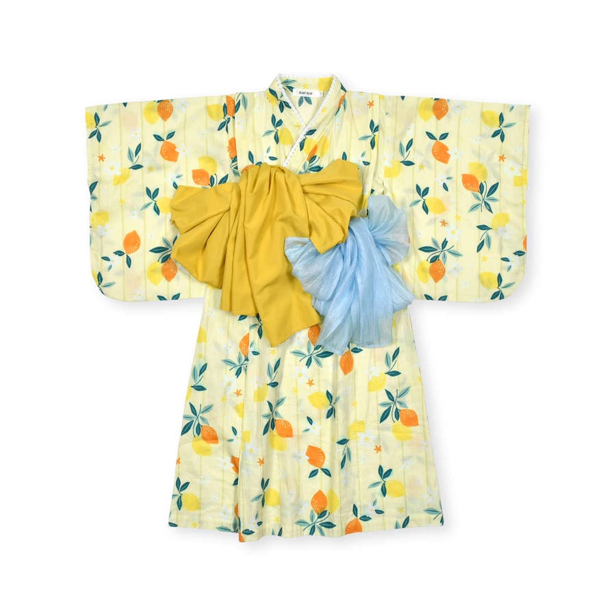 【お揃い】花火レモン花柄襟レースプルオーバー浴衣+帯セット(90~140cm)