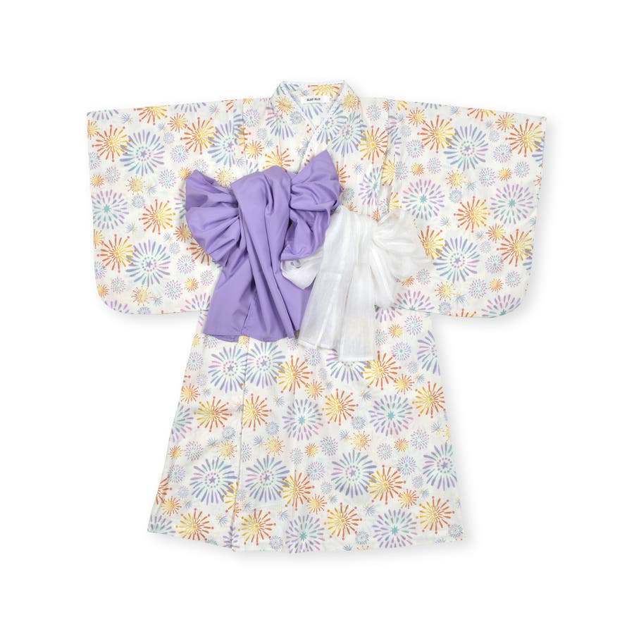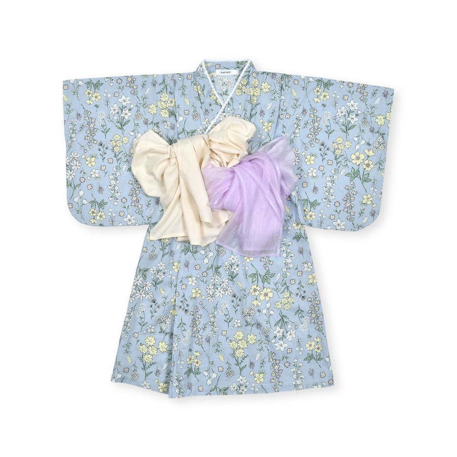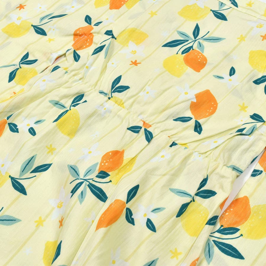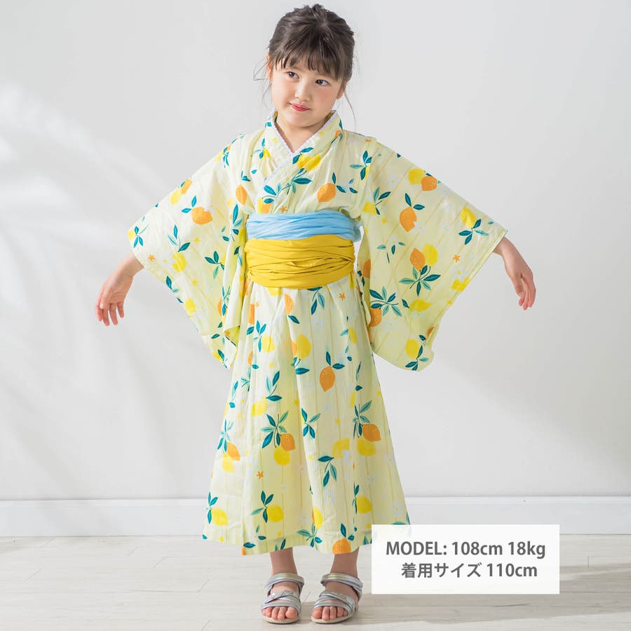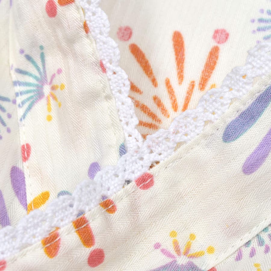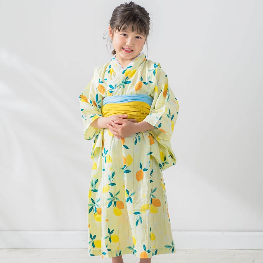 【お揃い】花火レモン花柄襟レースプルオーバー浴衣+帯セット(90~140cm)