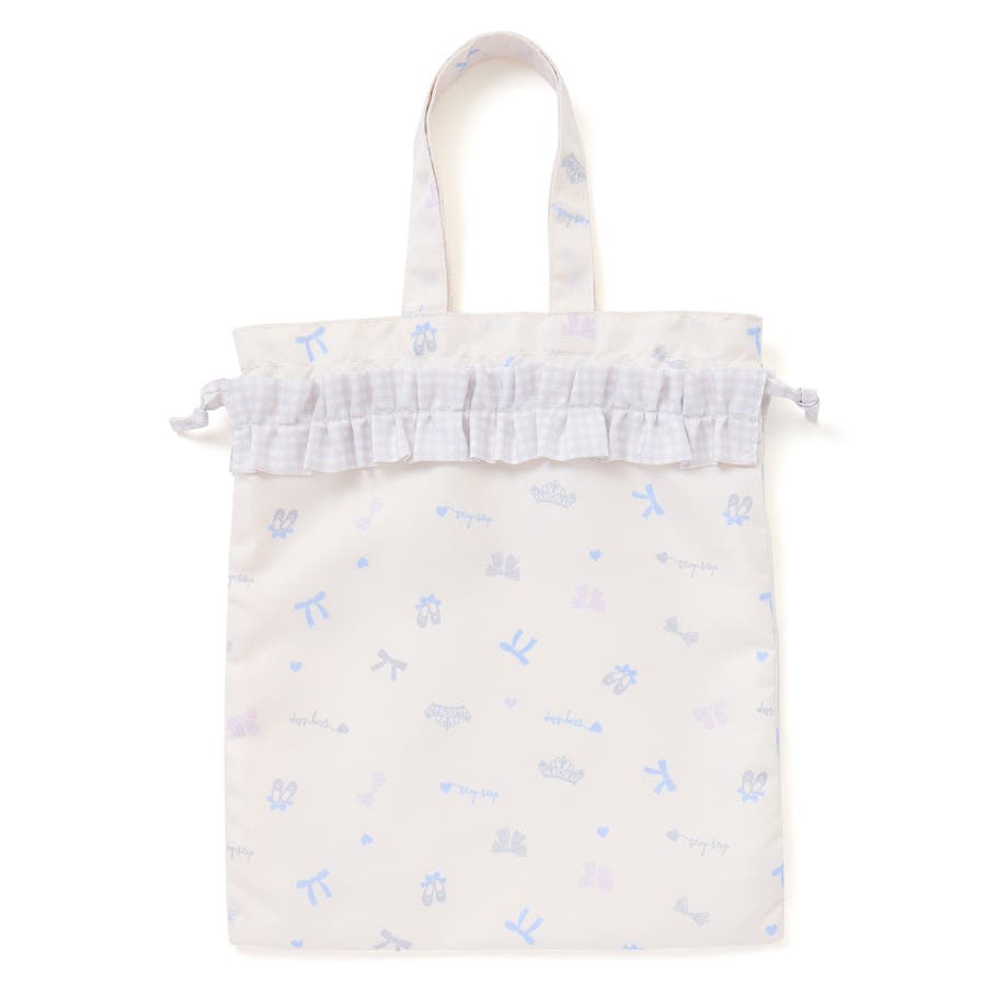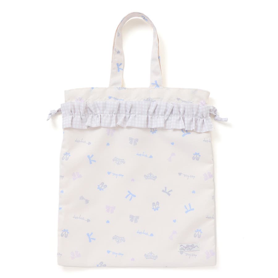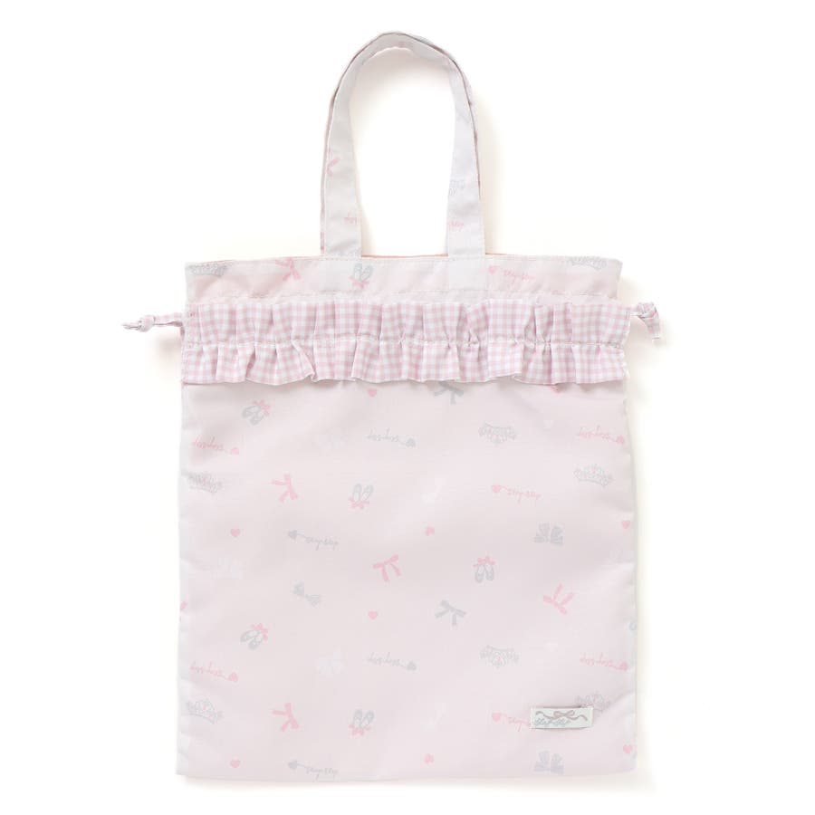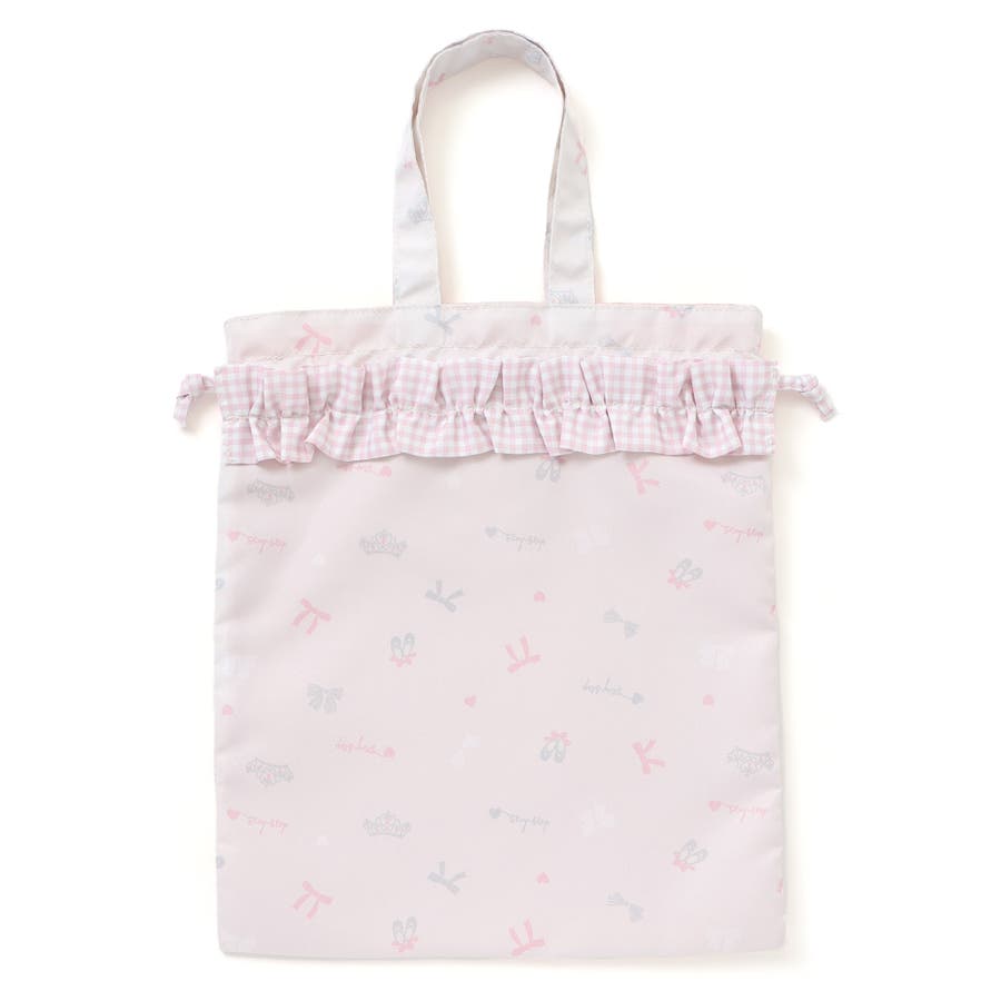 オフホワイト系・ピンク系:ティアラにリボン、バレエシューズ…女の子がキュンとときめく総柄にオフホワイト系はベージュやピンク系はピンクのチェックのフリルがガーリーで可愛い♪