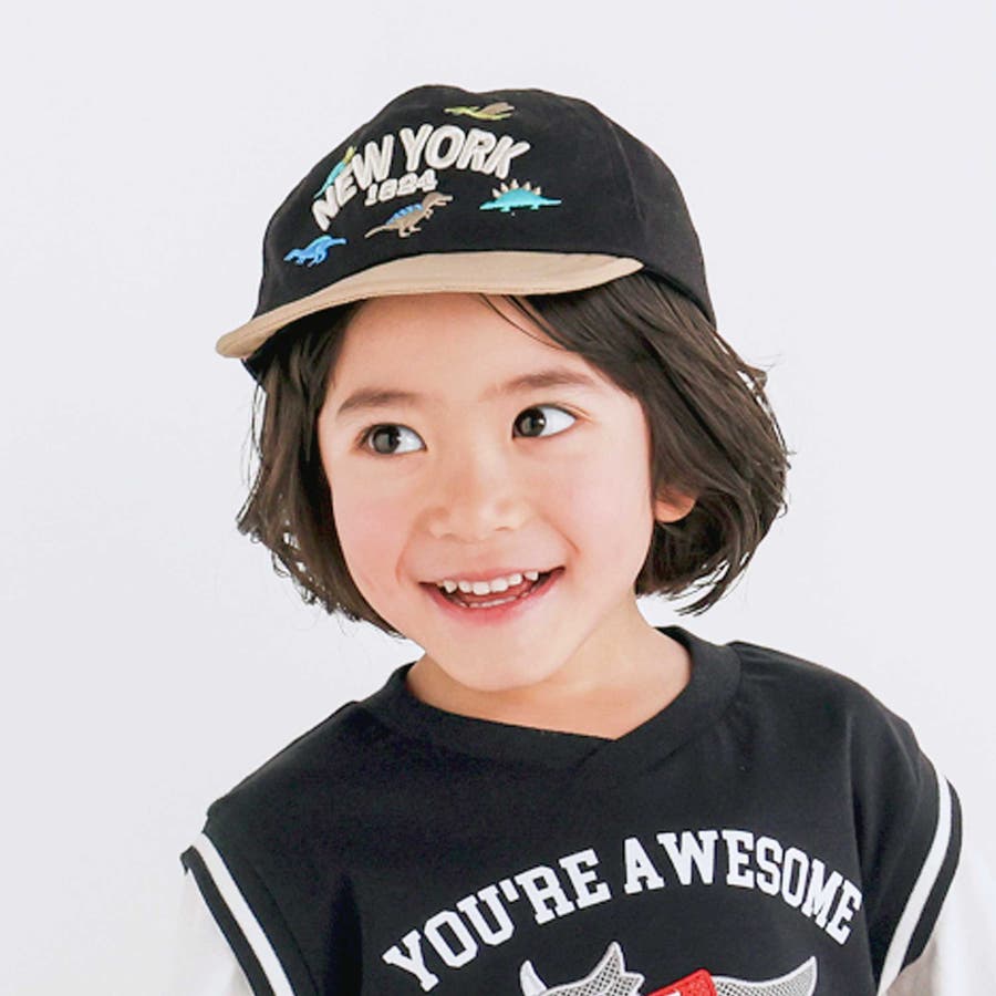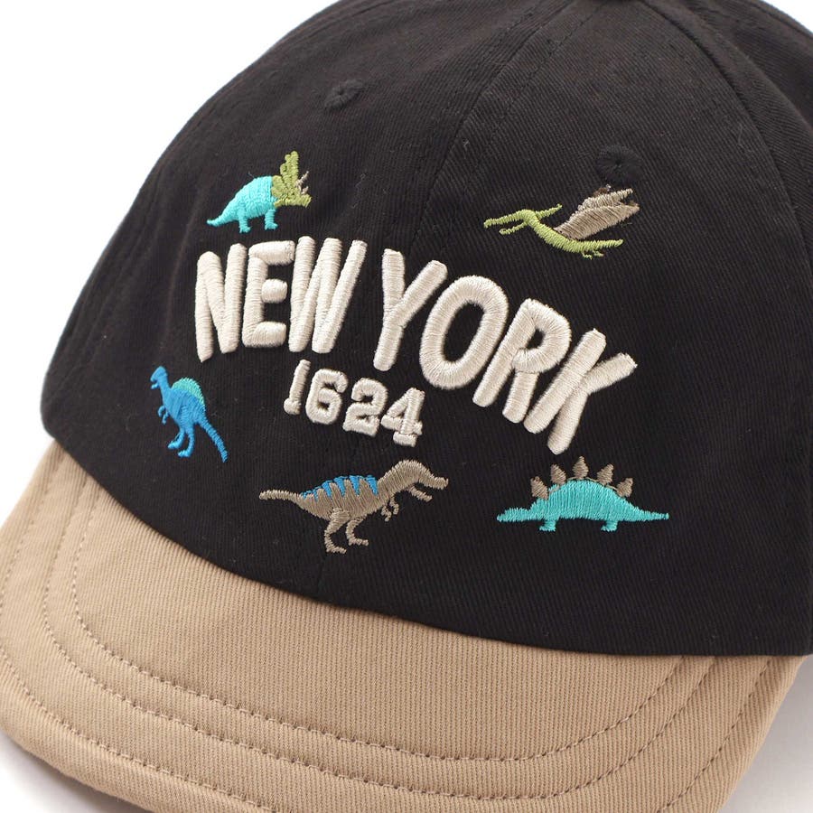 ブラック:ベージュのツバがポイントのブラック、カラフルな恐竜のモチーフがアクセントに。