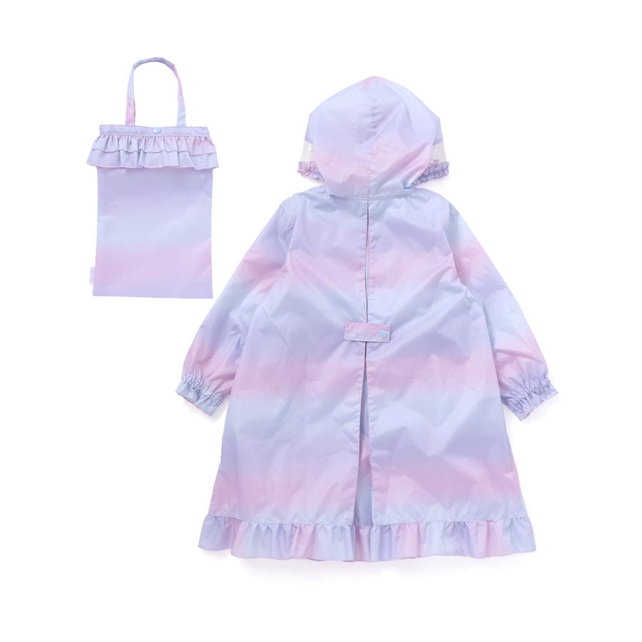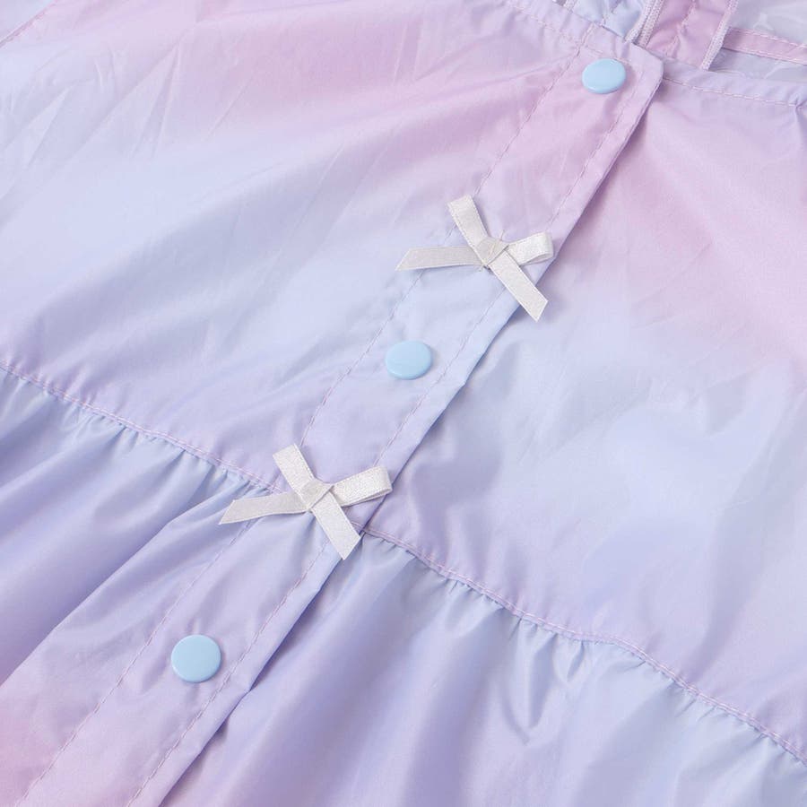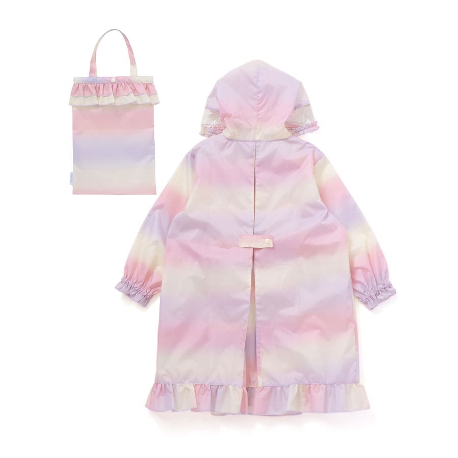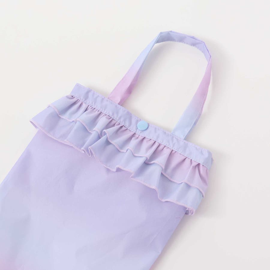 収納トートバッグ付フリルリボンオーロラレインコート