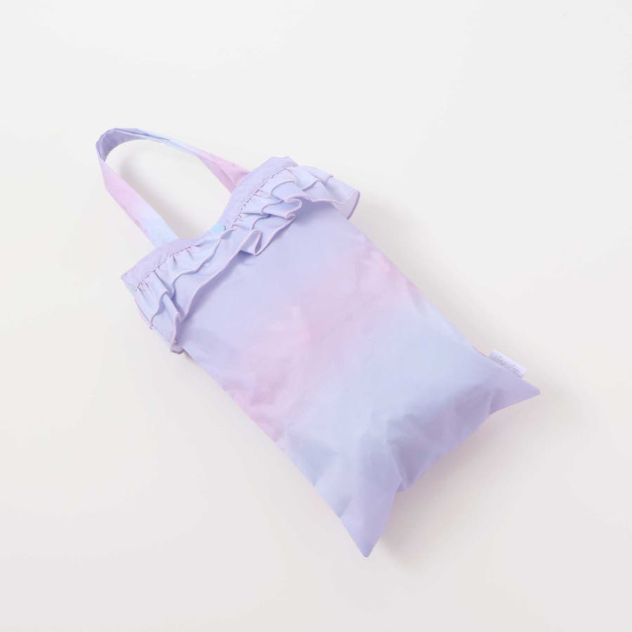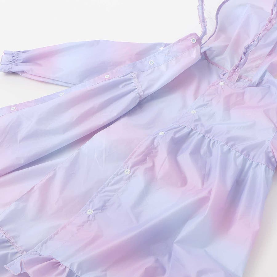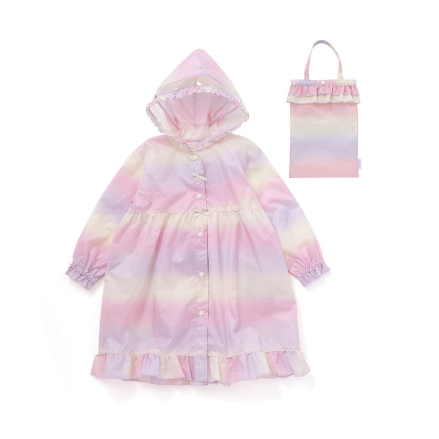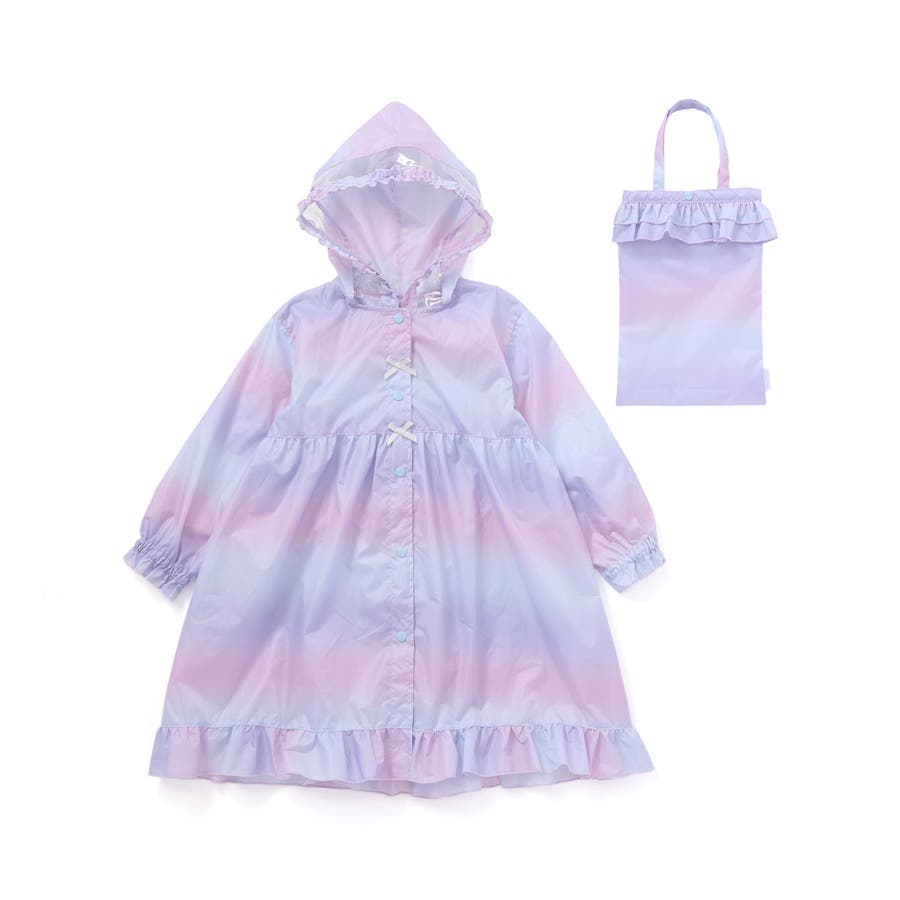 収納トートバッグ付フリルリボンオーロラレインコート