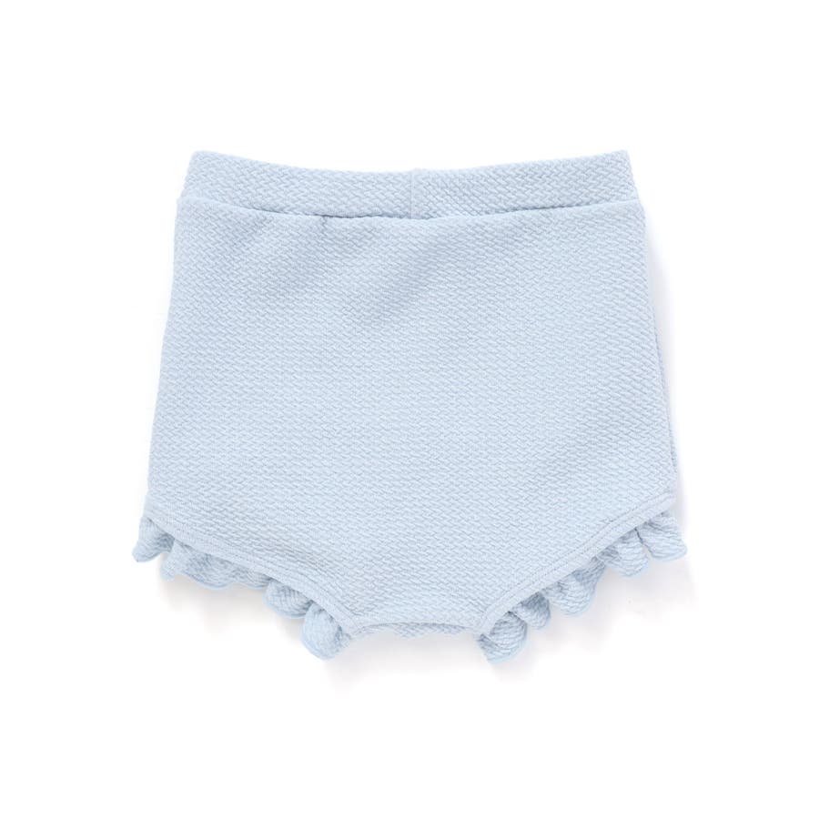 ボトムの足口にはフリルをあしらって細かいところまで可愛いにこだわったデザインに仕上げました。