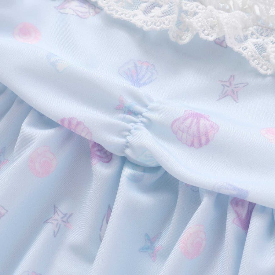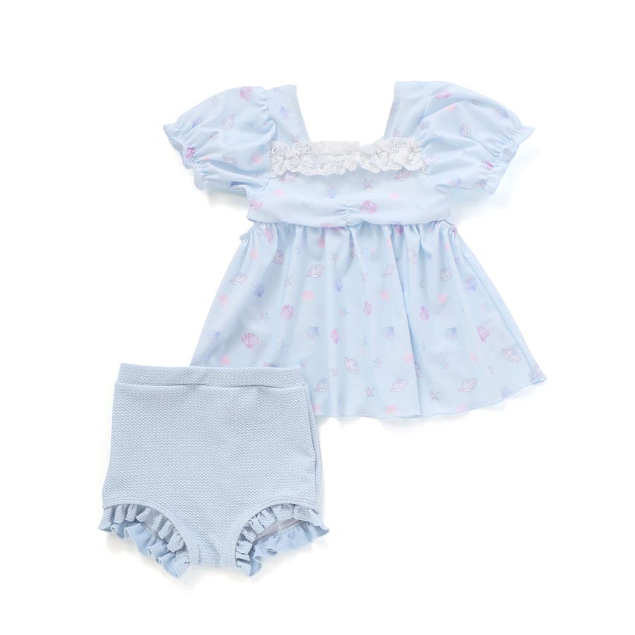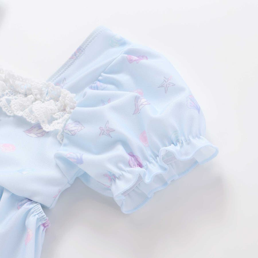 シェル柄フロントレースパフスリーブセパレート型スイムウェア(90~130cm)