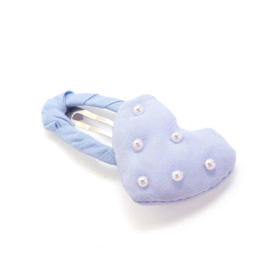 ブルー・パープル:ビーズがちりばめられたハート。さりげなく模様の入った生地になっているのがポイント