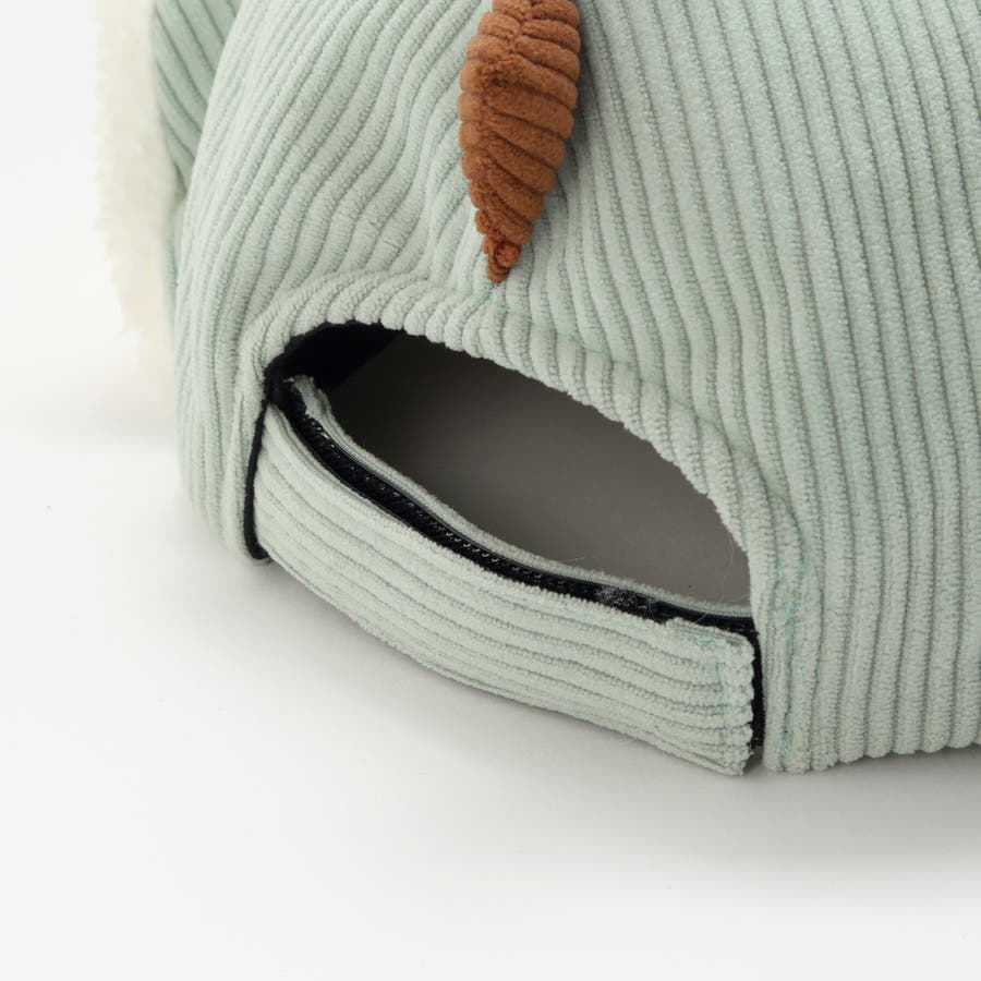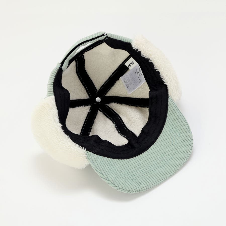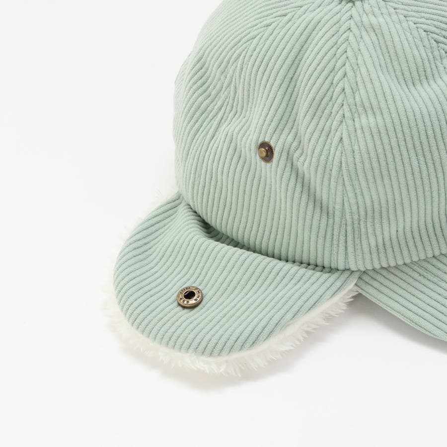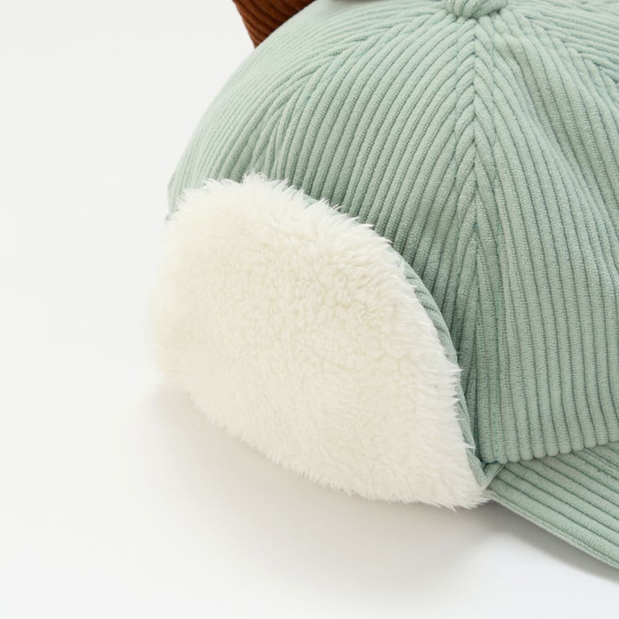 サイドのボアは、スナップボタンを外せば耳にかぶるようになっているので、寒い日や自転車でのおでかけなどにも安心。