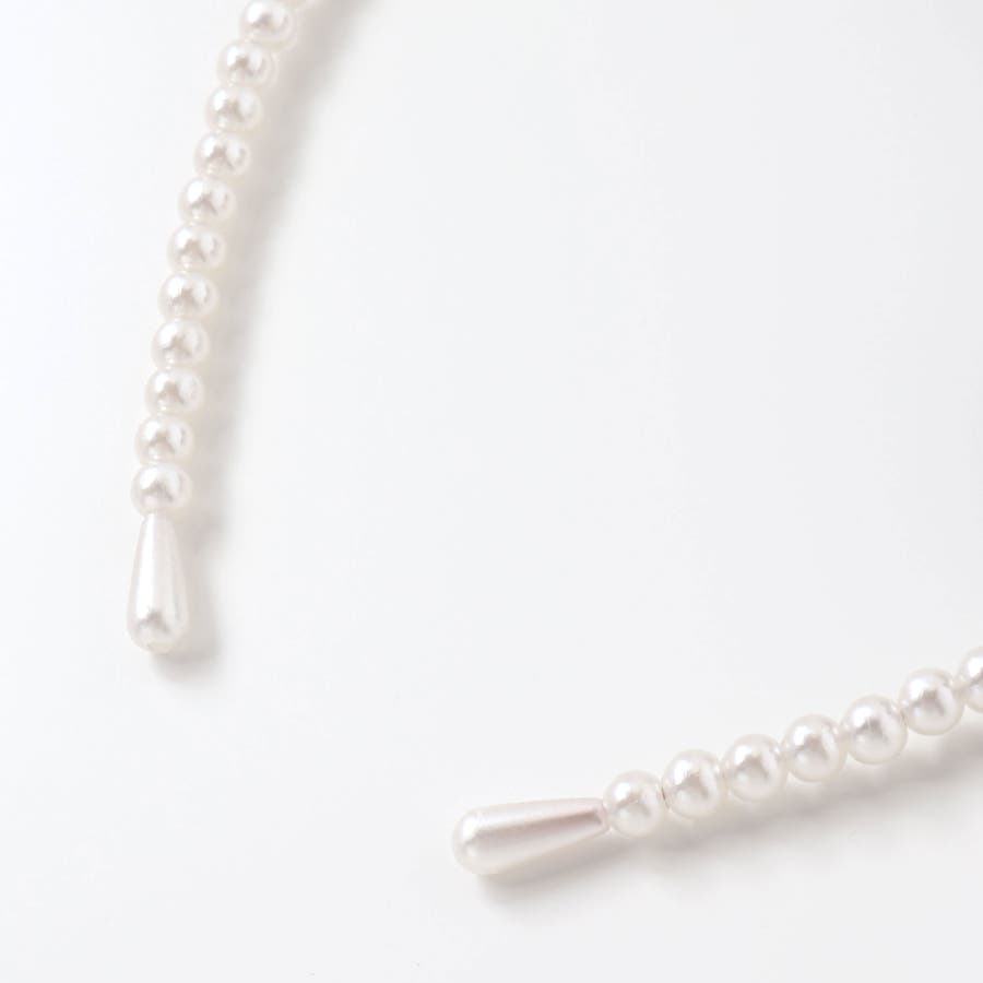 パール調ビーズを使用したカチューシャ本体が、顔まわりを明るく見せてくれます。
