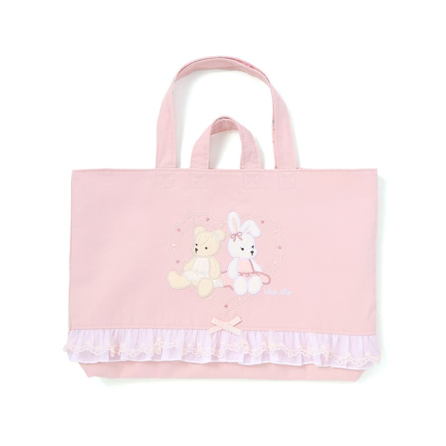 クマウサギアニマルキラキラシフォンフリル付きリバーシブルレッスンバッグ