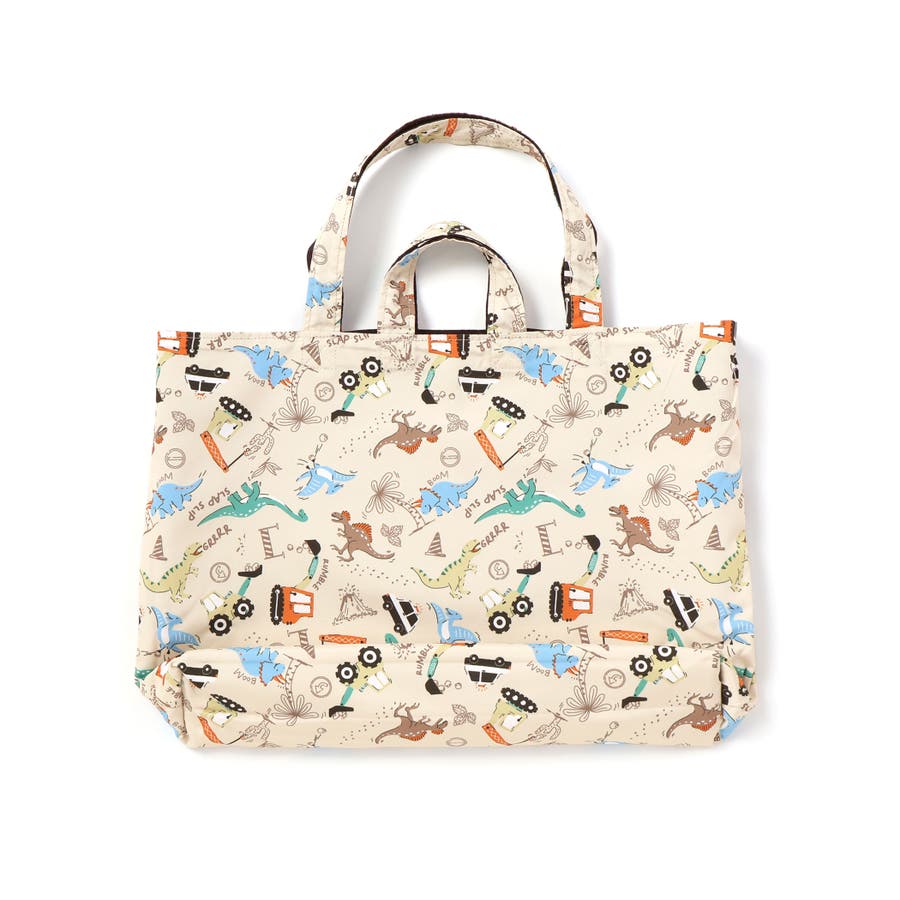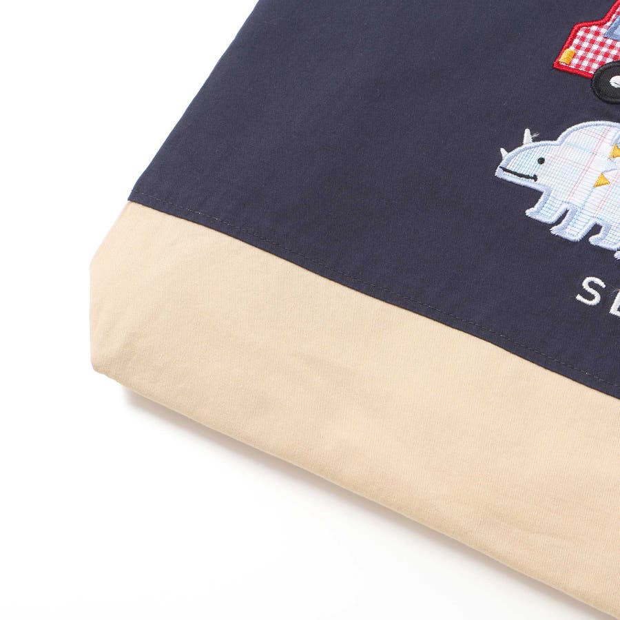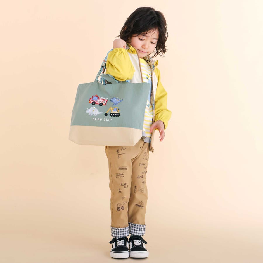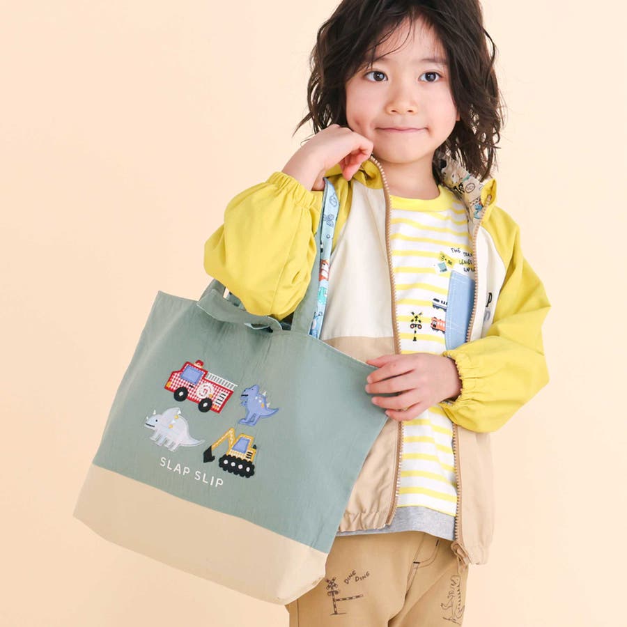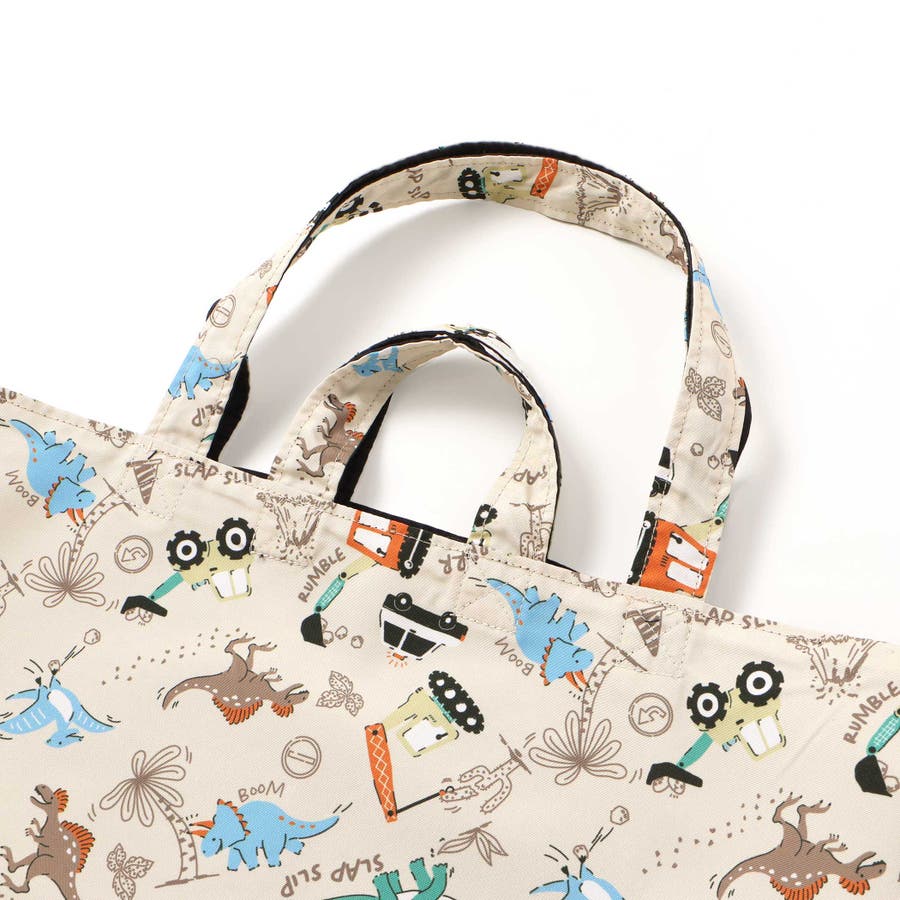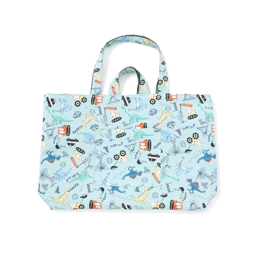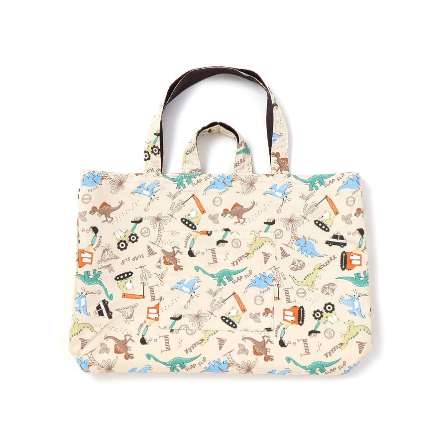 恐竜はたらくくるまパッチ刺しゅうリバーシブルレッスンバッグ