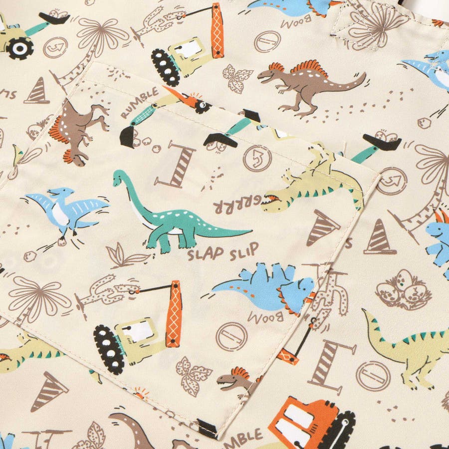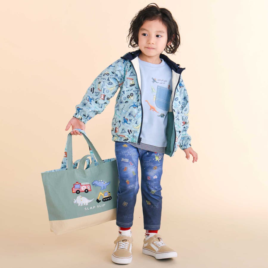 フロントには恐竜とはたらくくるまのパッチ刺しゅうを大胆に配置し、思わず触りたくなる立体感のある仕上がりに。