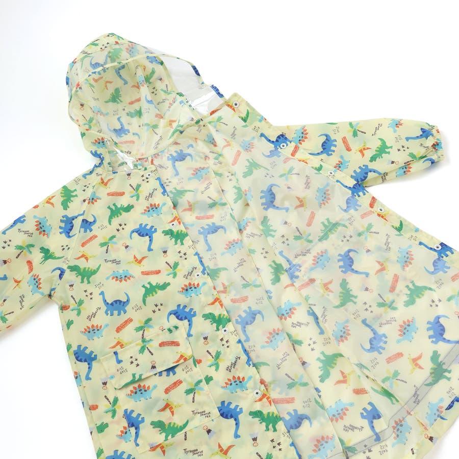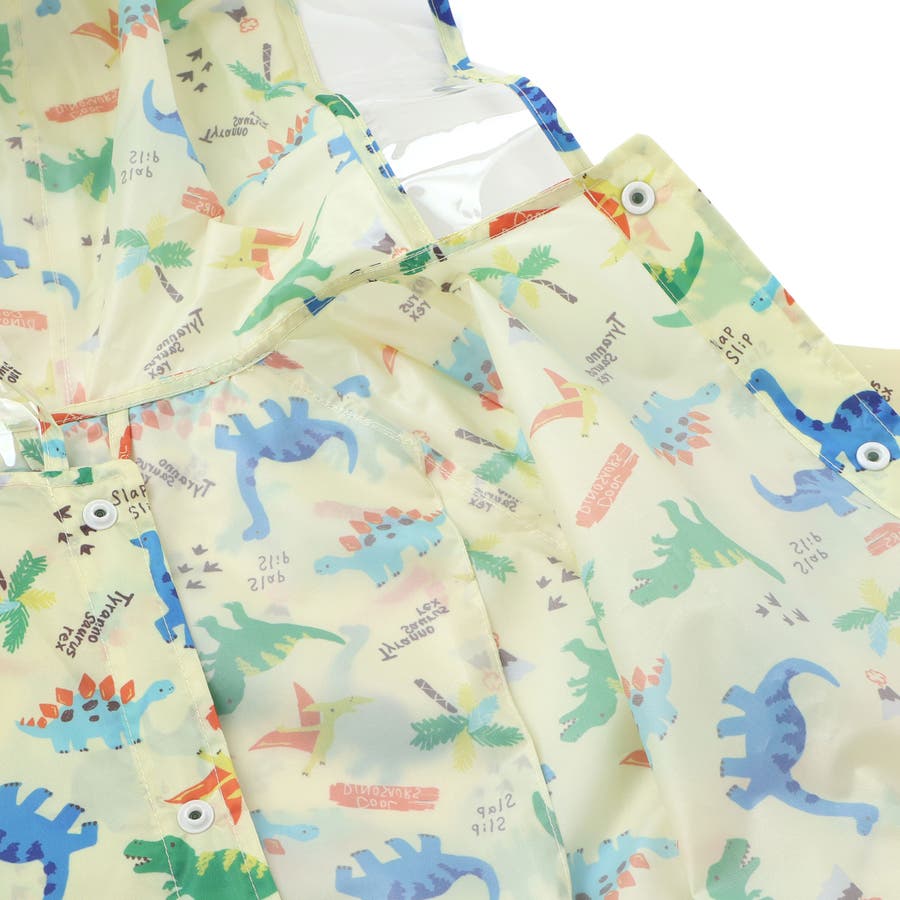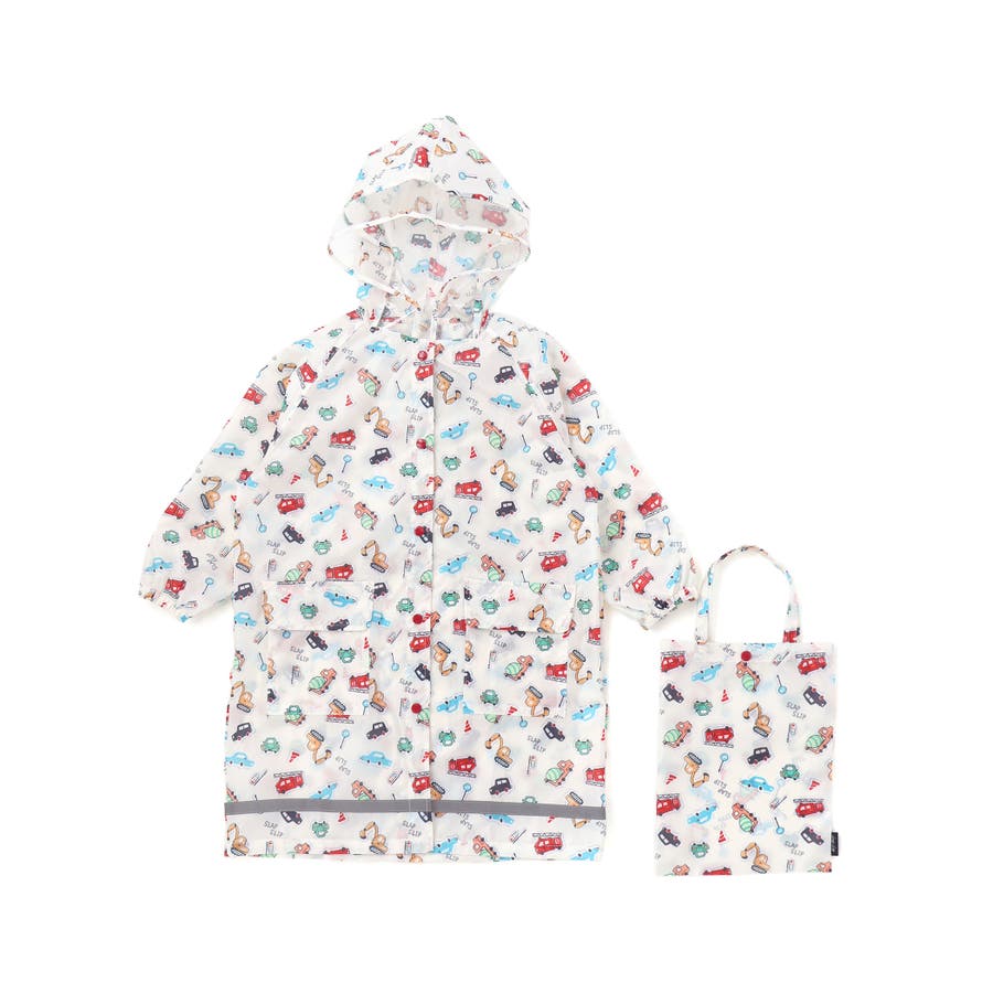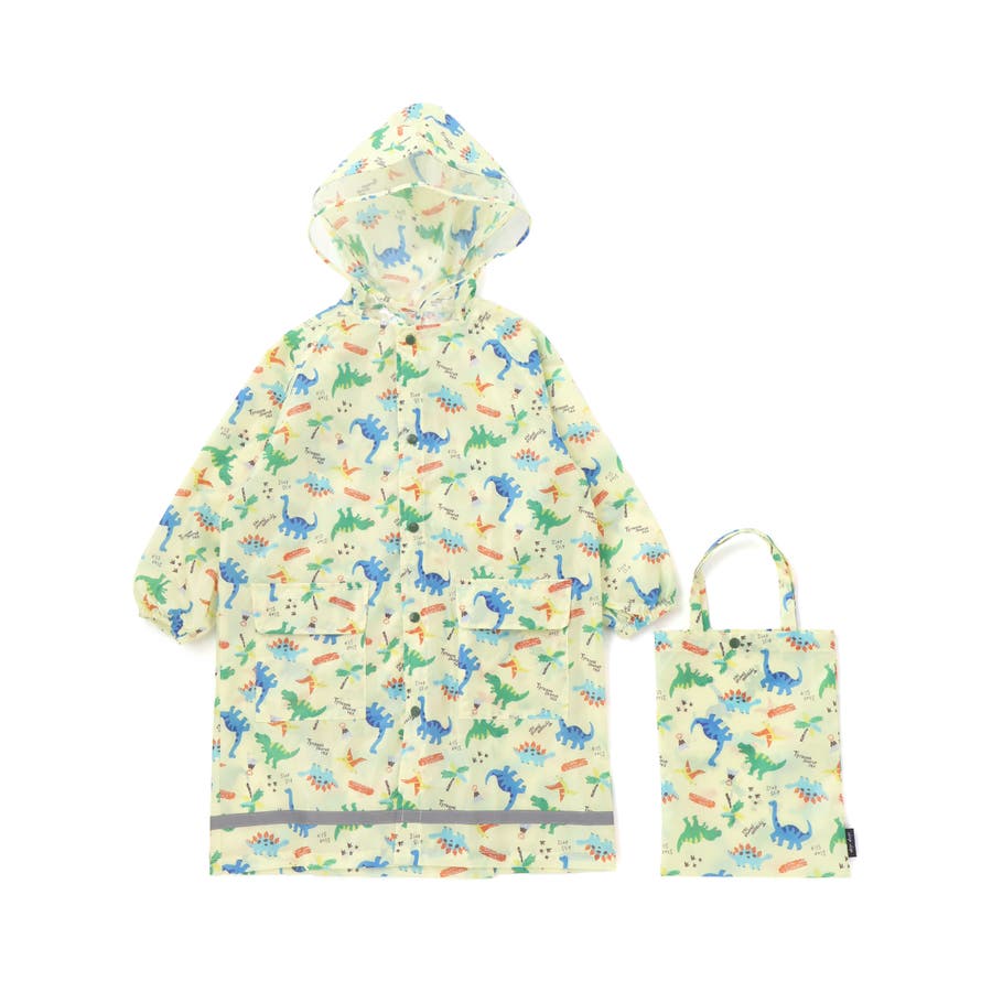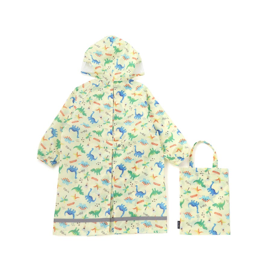 【お揃い】はたらくくるま花柄恐竜プリント総柄手提げ袋付きレインコート(95~13…