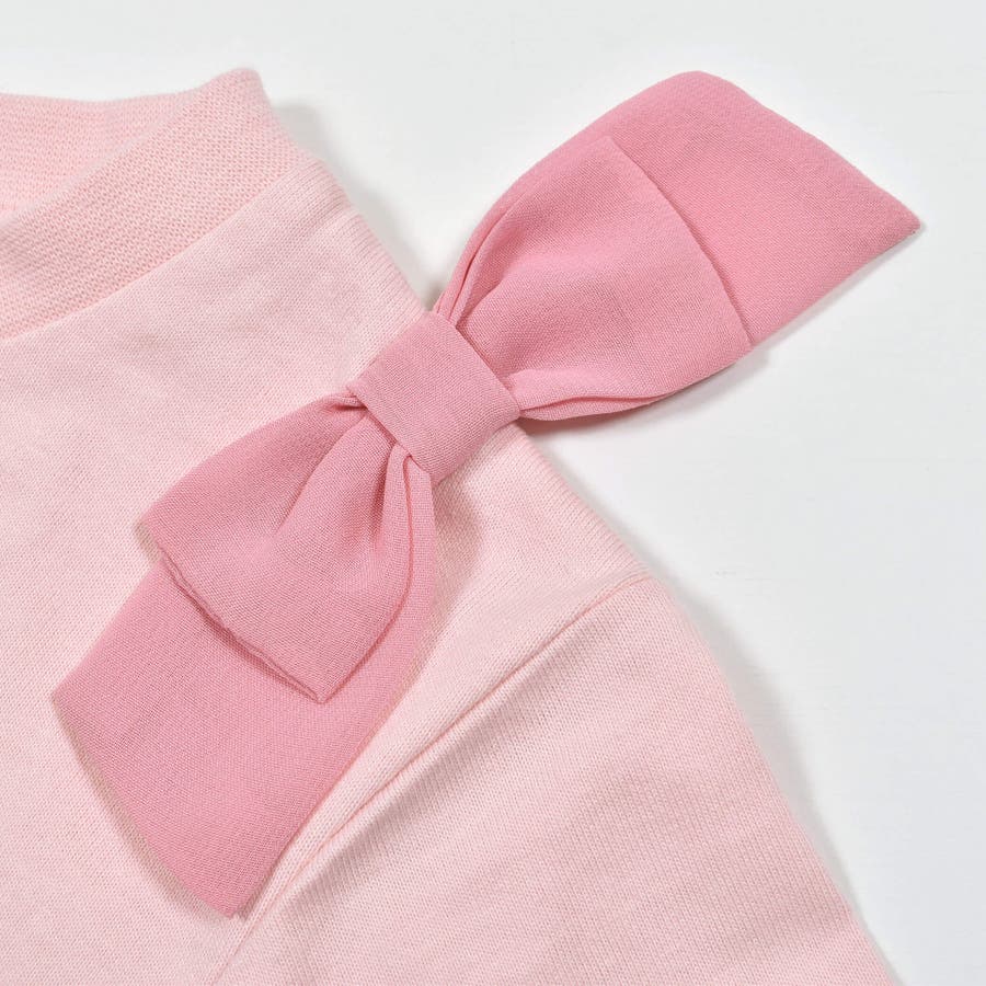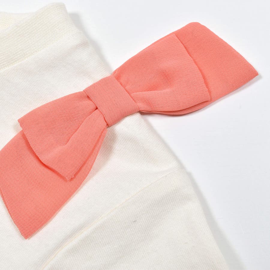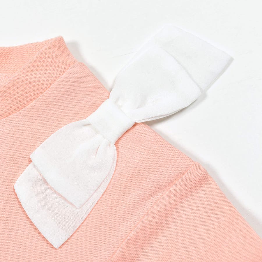 肩にオンしたリボンがキュートな半袖Tシャツ。