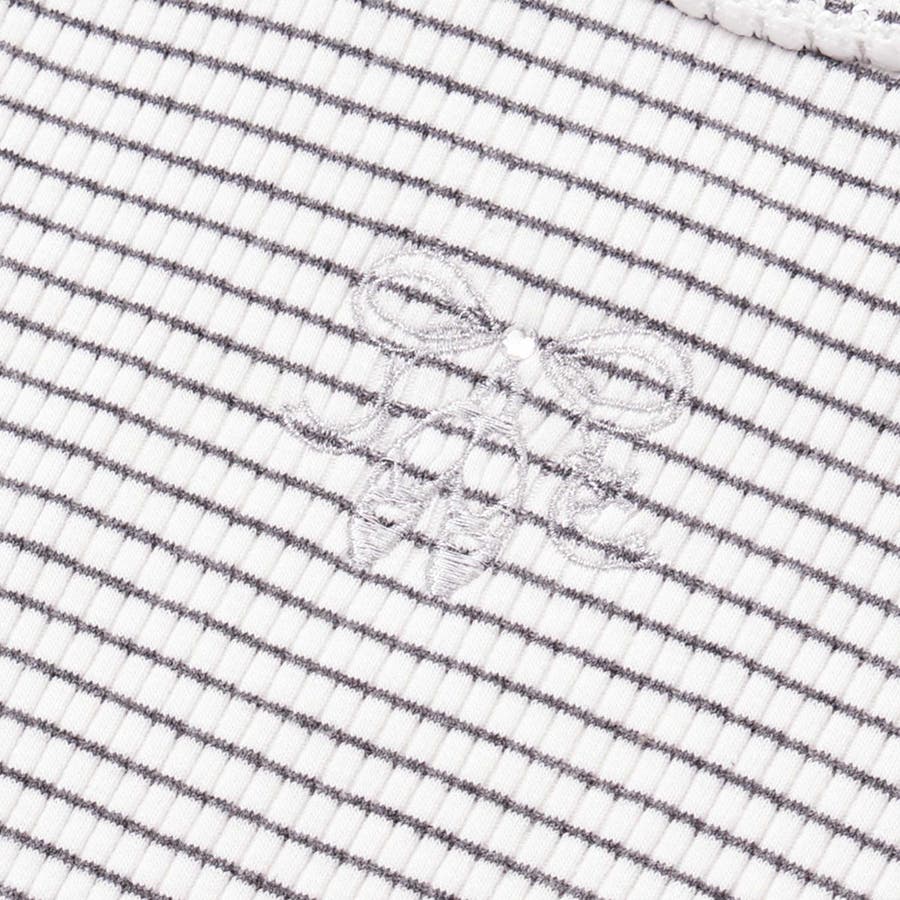 襟ぐりにはフリルをプラスしてシンプルながらも細かいところまで可愛いにこだわったデザインです。