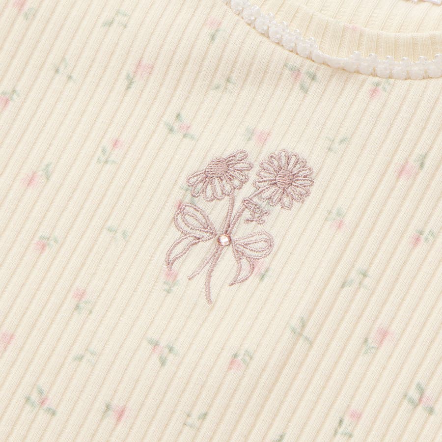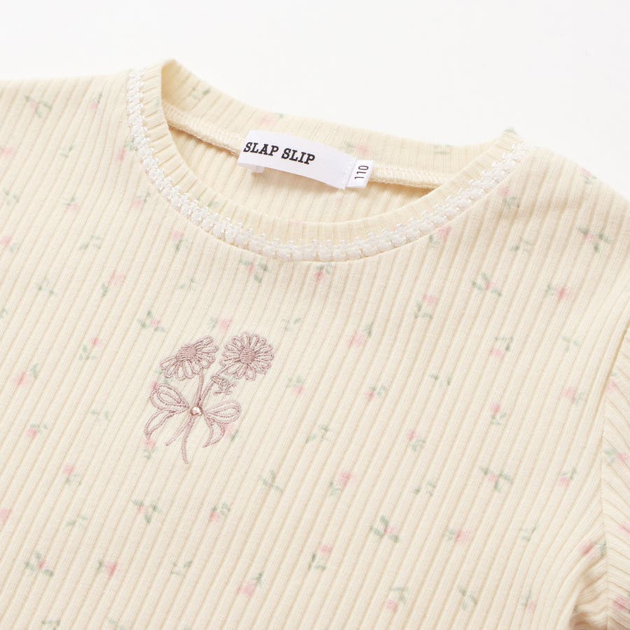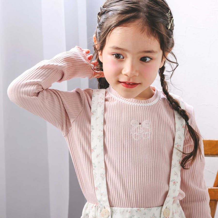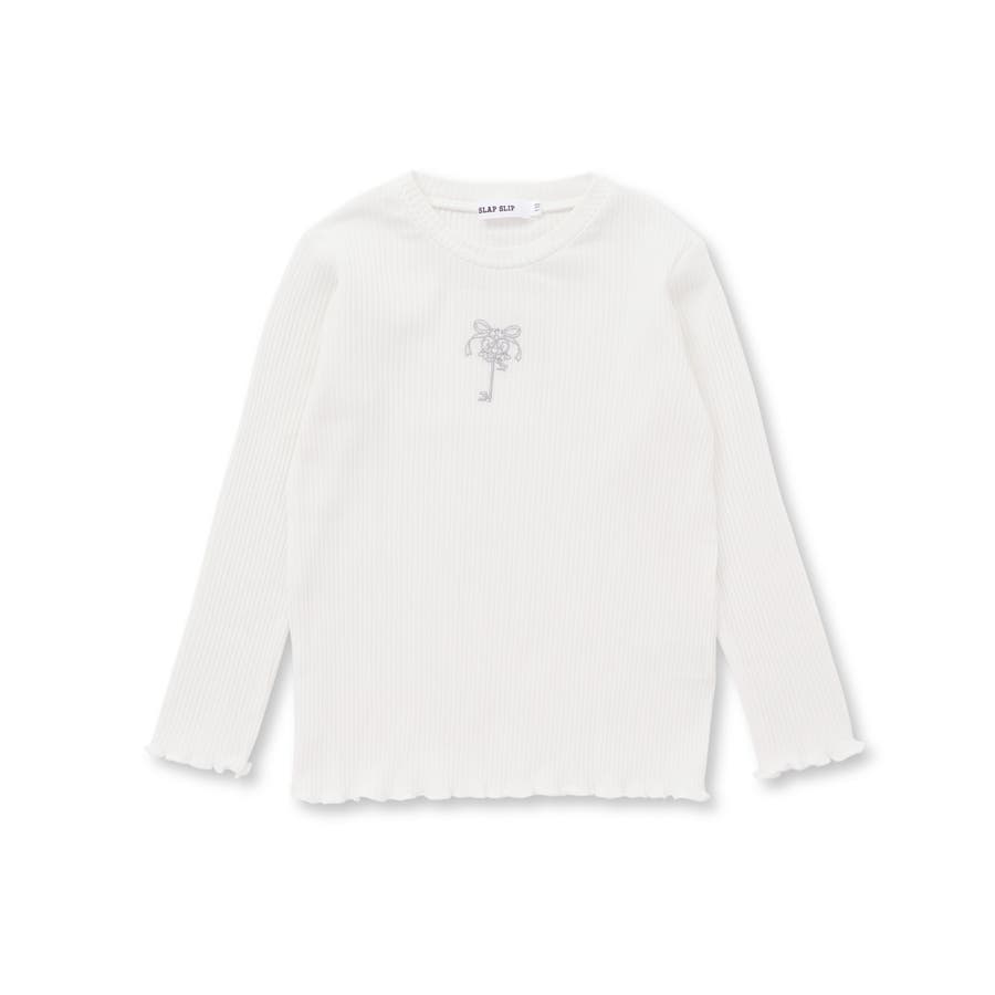 襟ぐりフリルキラッとラメ糸モチーフ刺しゅうトップス(80~130cm)