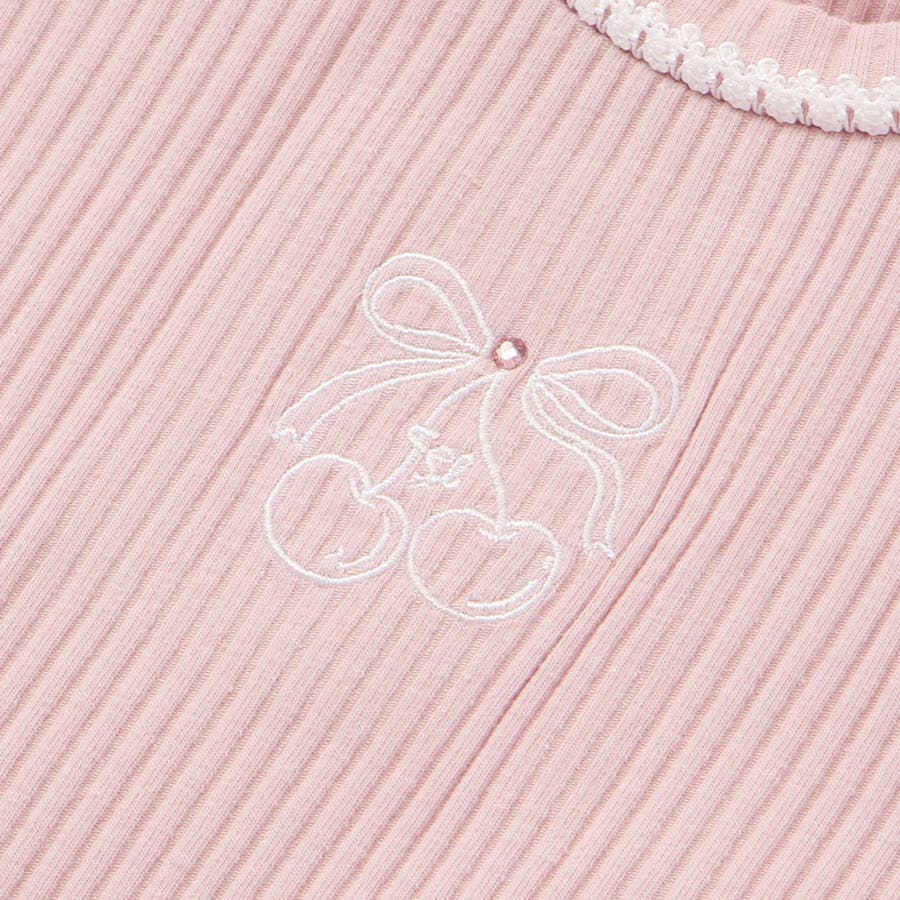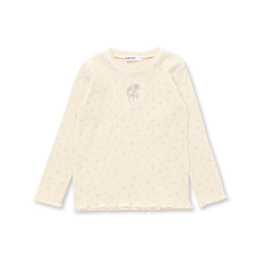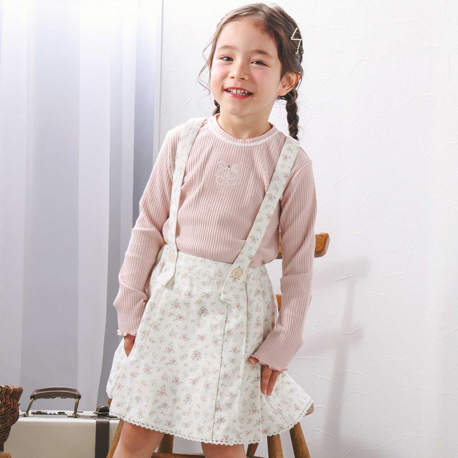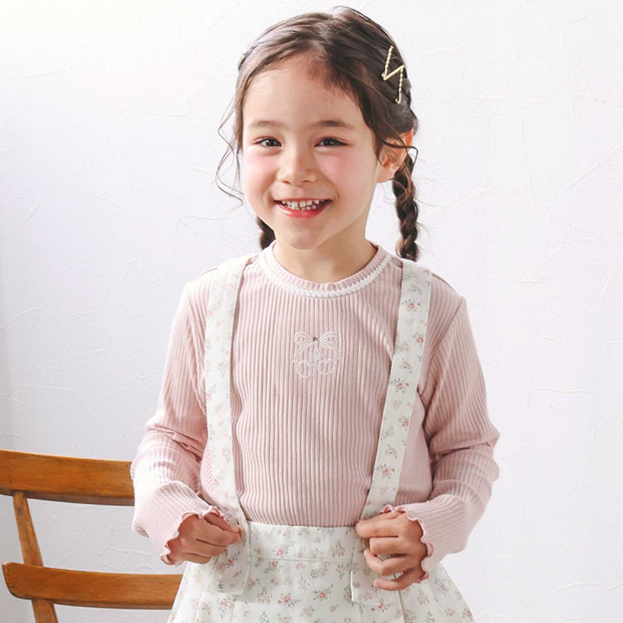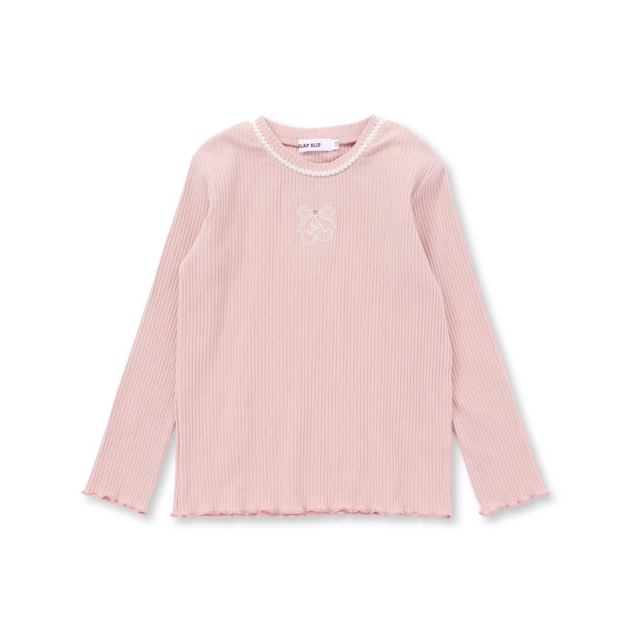 襟ぐりフリルキラッとラメ糸モチーフ刺しゅうトップス(80~130cm)