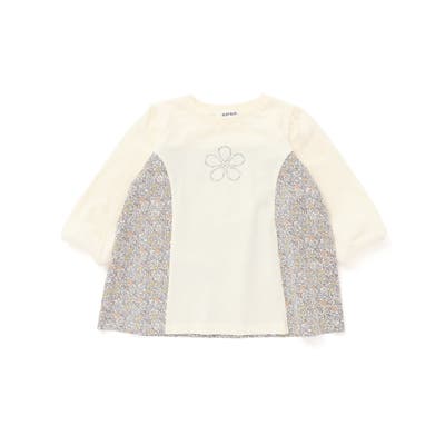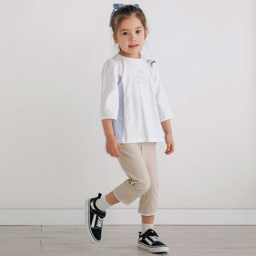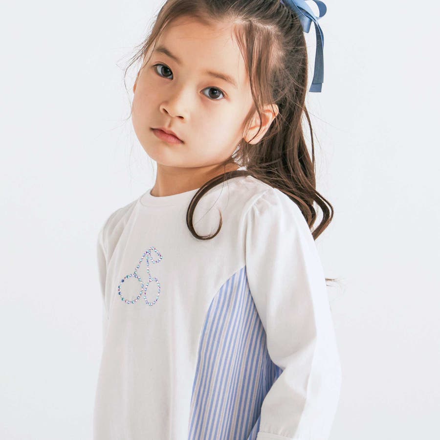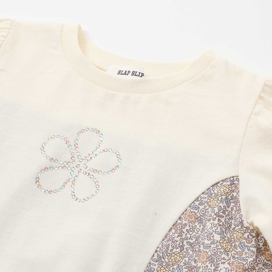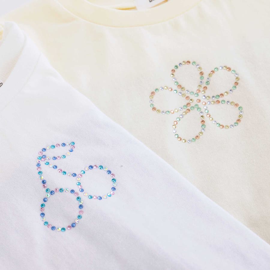 キラキララインストーンモチーフ切り替え7分袖Tシャツ(80~130cm)