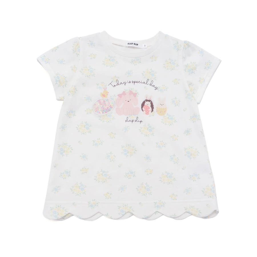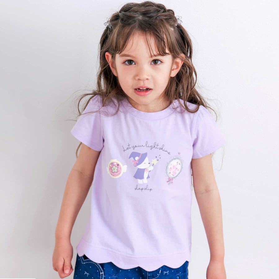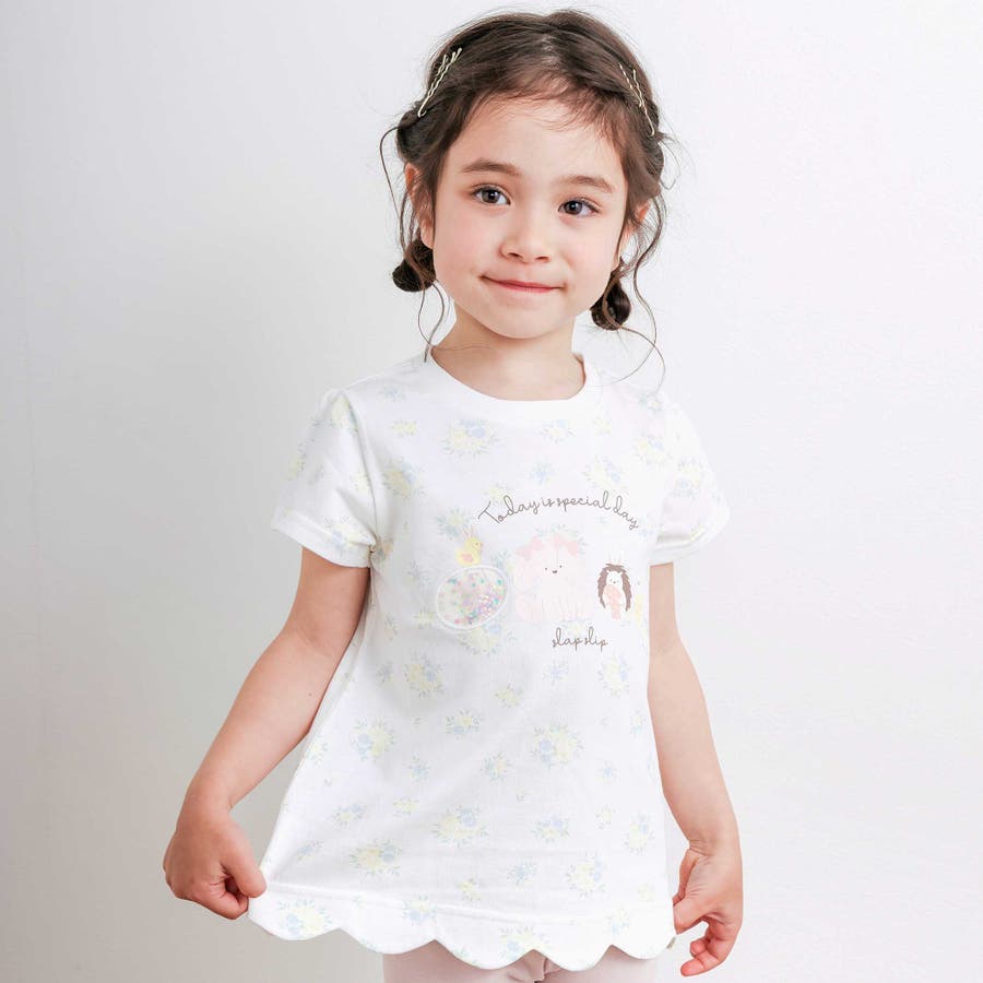 【お揃い】アニマルキラキラパッチ裾スカラップTシャツ(80~130cm)