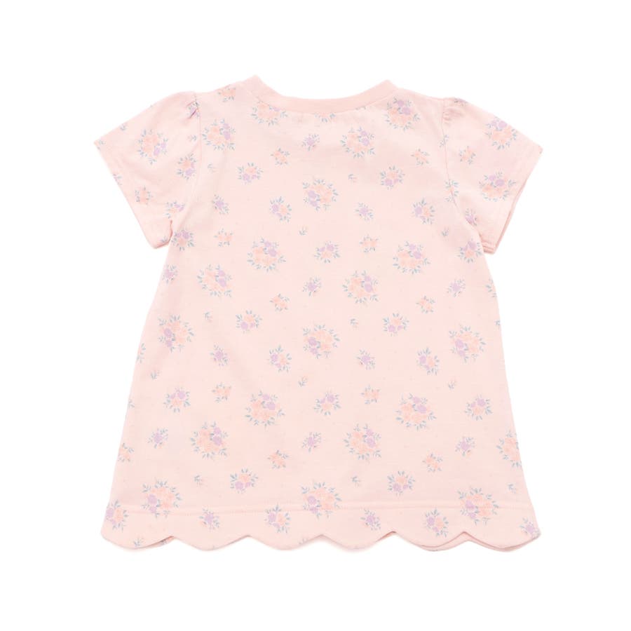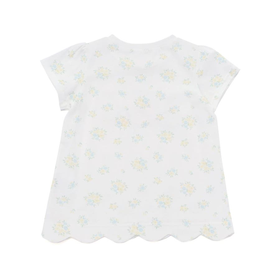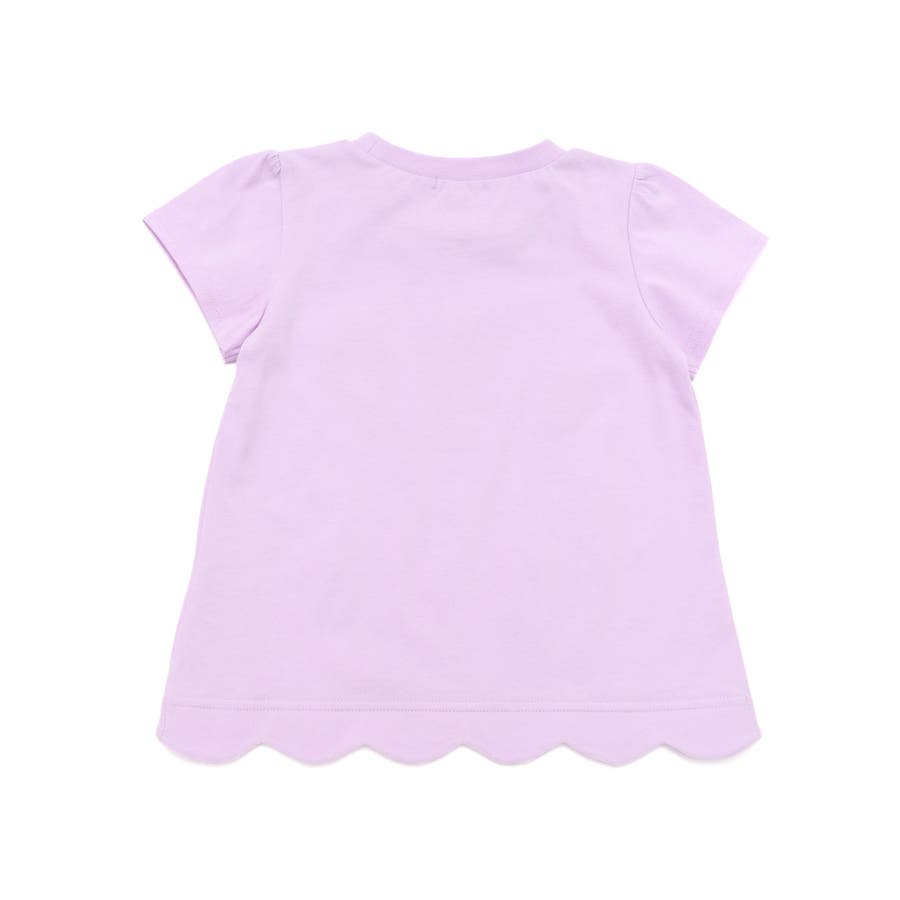 裾がスカラップになっている半袖Tシャツ。