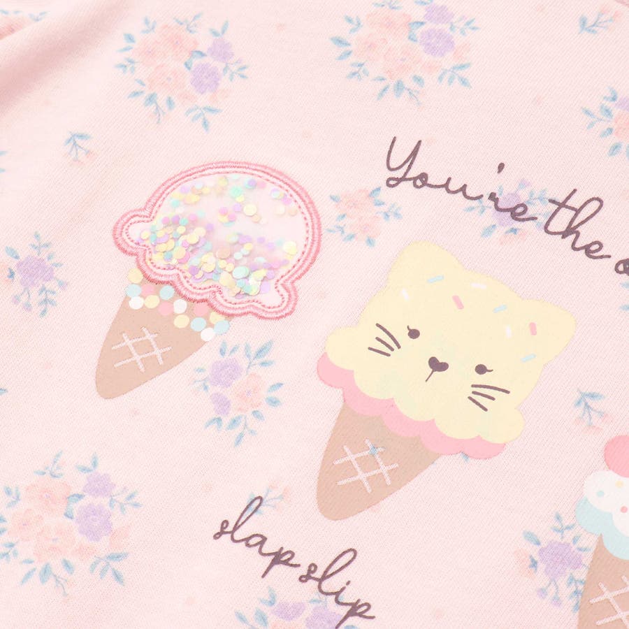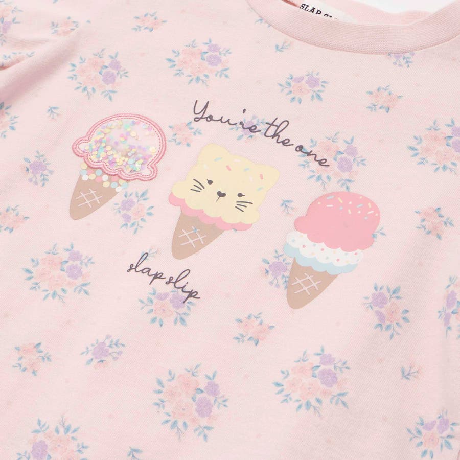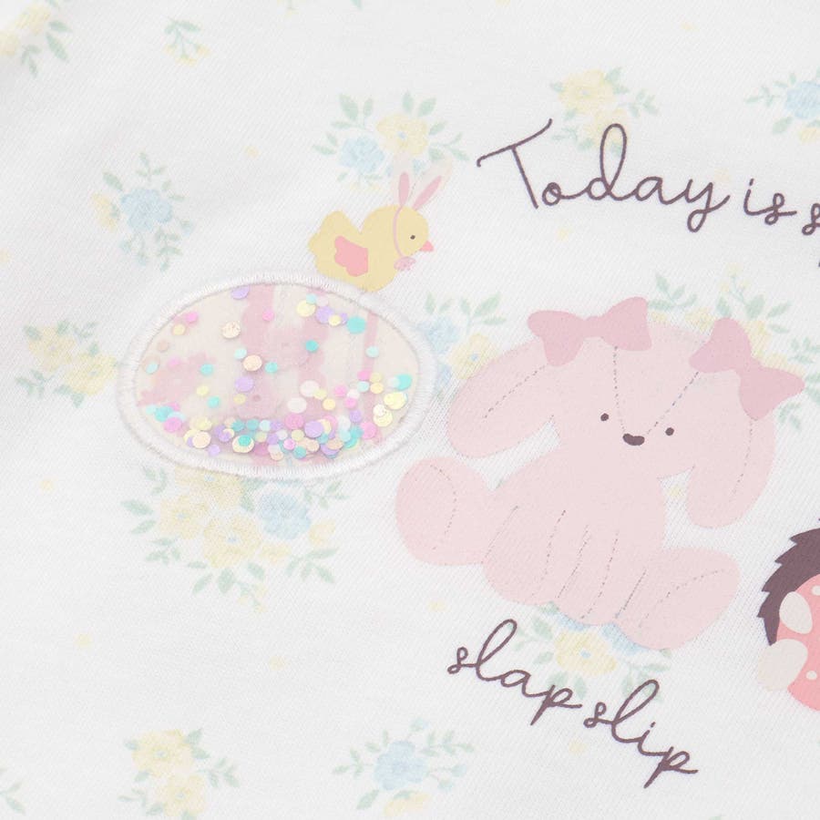 花柄(ホワイト系・ピンク系)は同じ生地を使用したベビー用のロンパース(1837-72592)も展開しているからお揃いコーデも◎