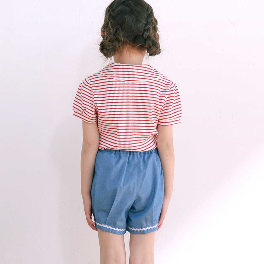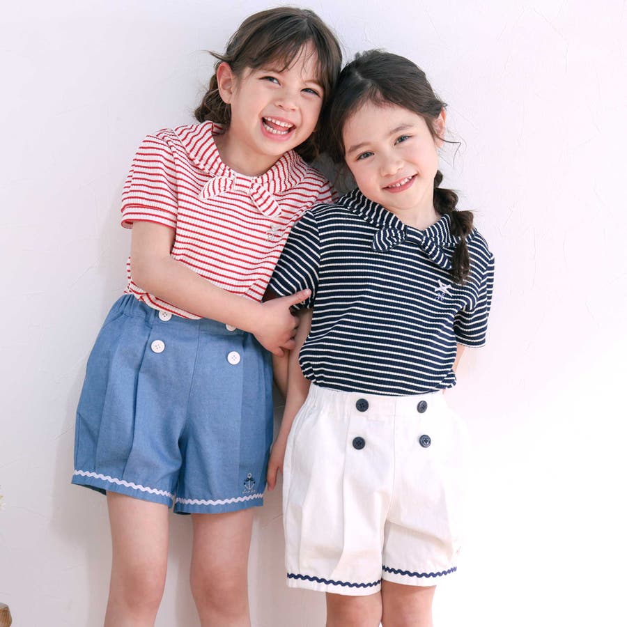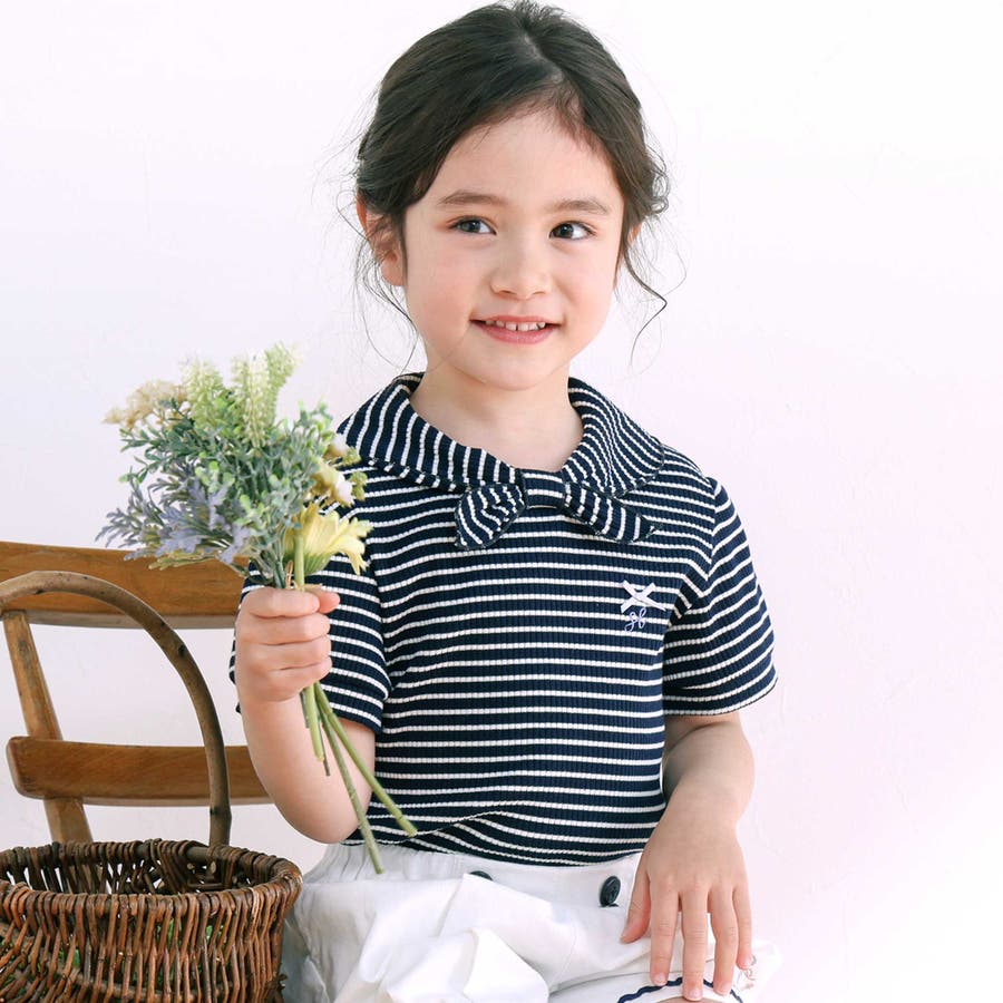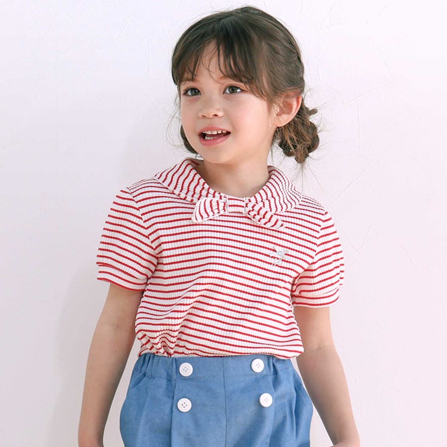 リボン襟マリン風ボーダーTシャツ(80~130cm)