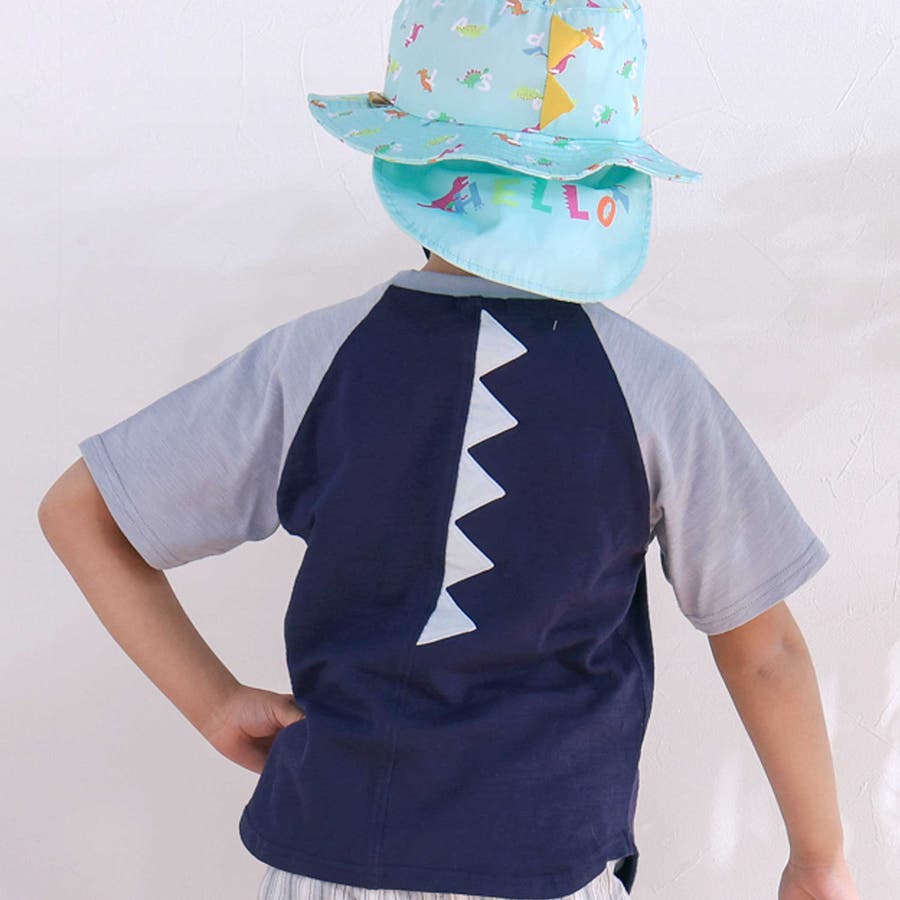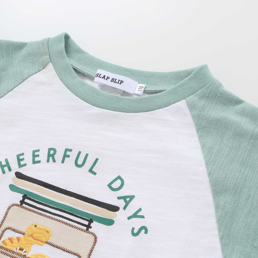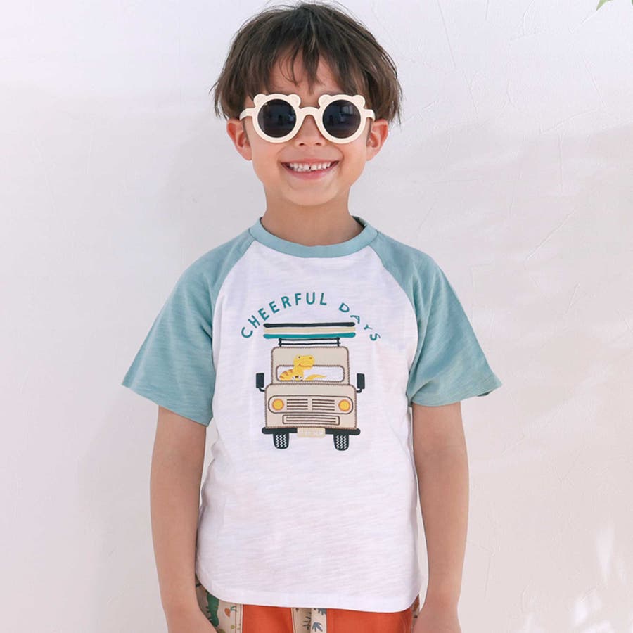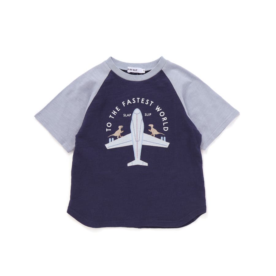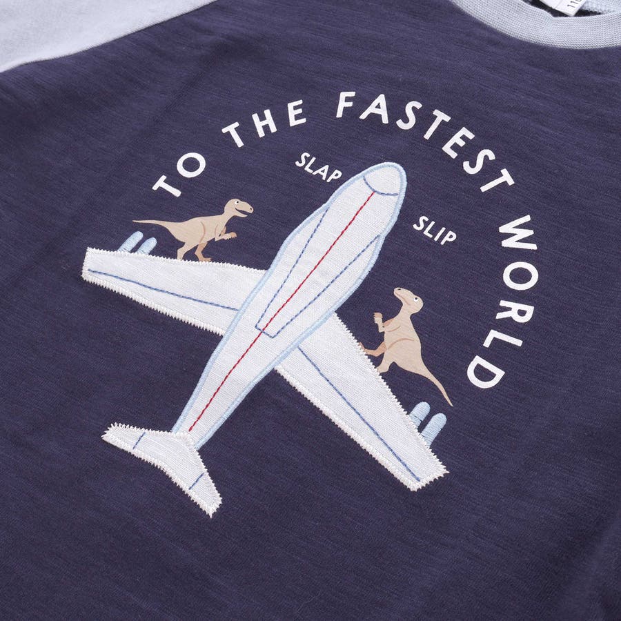 飛行機クルマ恐竜刺しゅうプリントラグランTシャツ(80~130cm)