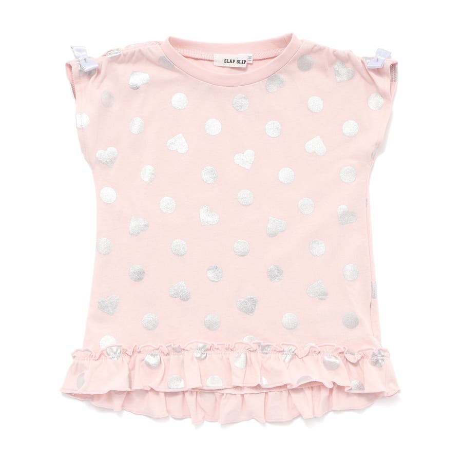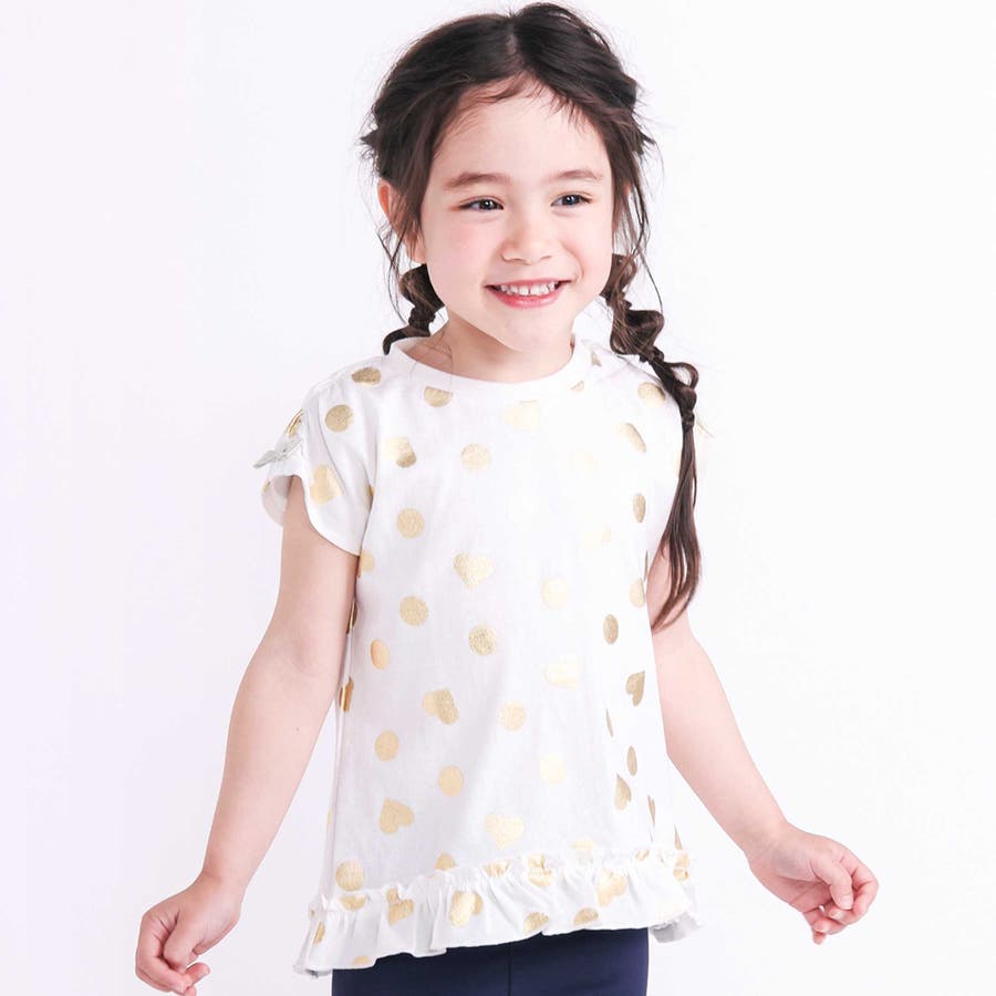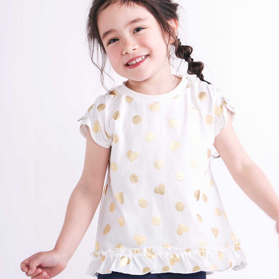 【接触冷感】裾フリルハートドット箔プリント柄Tシャツ(80~130cm)
