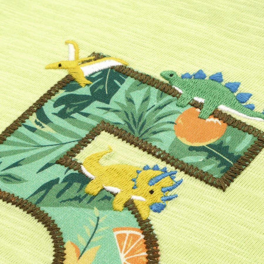グリーン:今にもTシャツから飛び出してきそうな恐竜さんがおもしろい