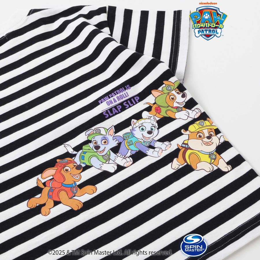 【パウ パトロール×SLAPSLIP】無地ボーダーぐるっとキャラクタープリントT…