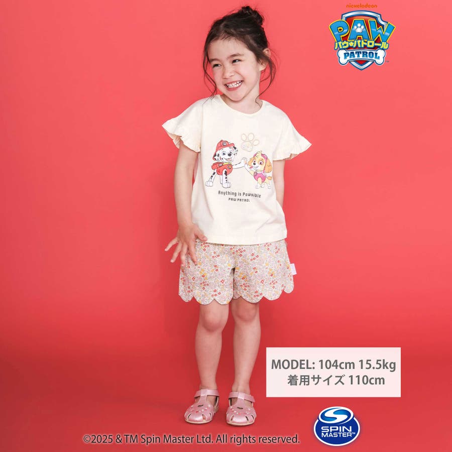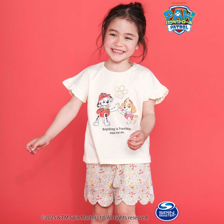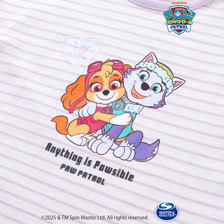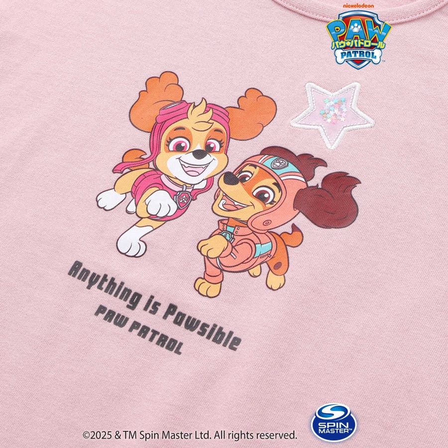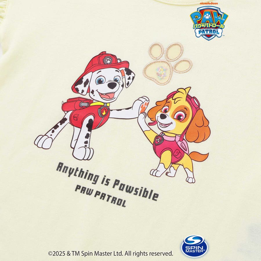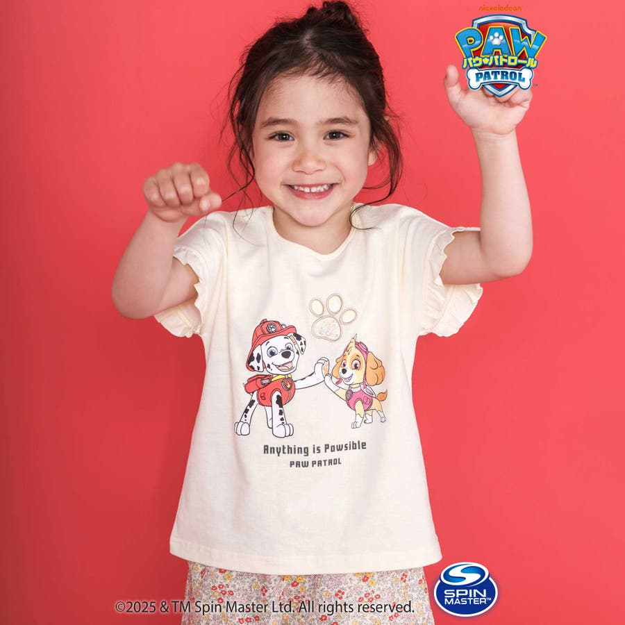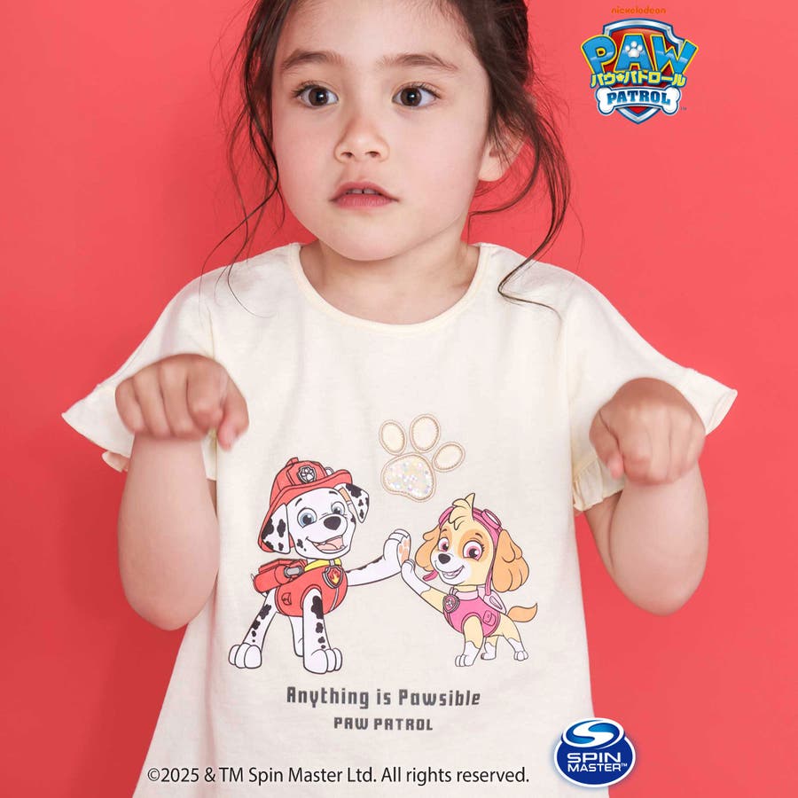 【パウ パトロール×SLAPSLIP】袖フリルキャラクタープリントキラキラTシャ…