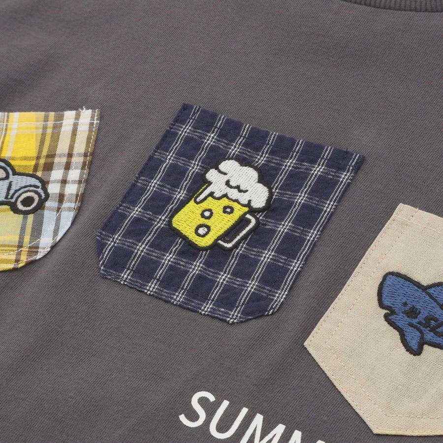 ポケットがインパクトのある男の子らしい半袖Tシャツ。