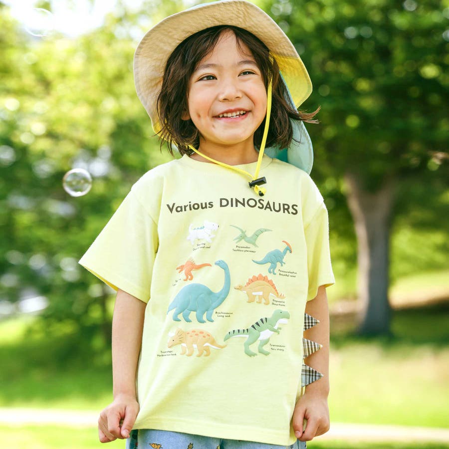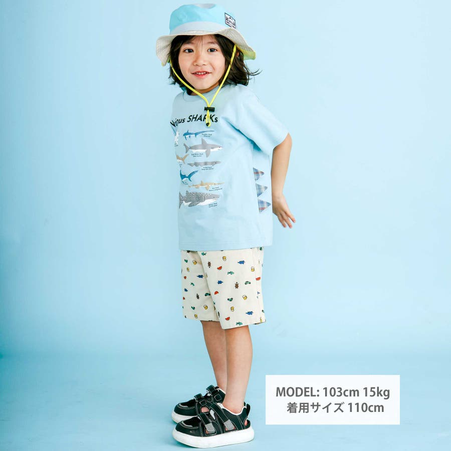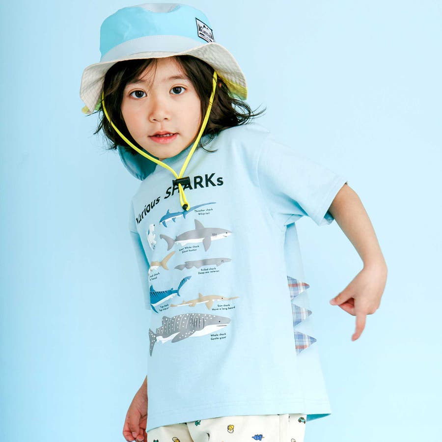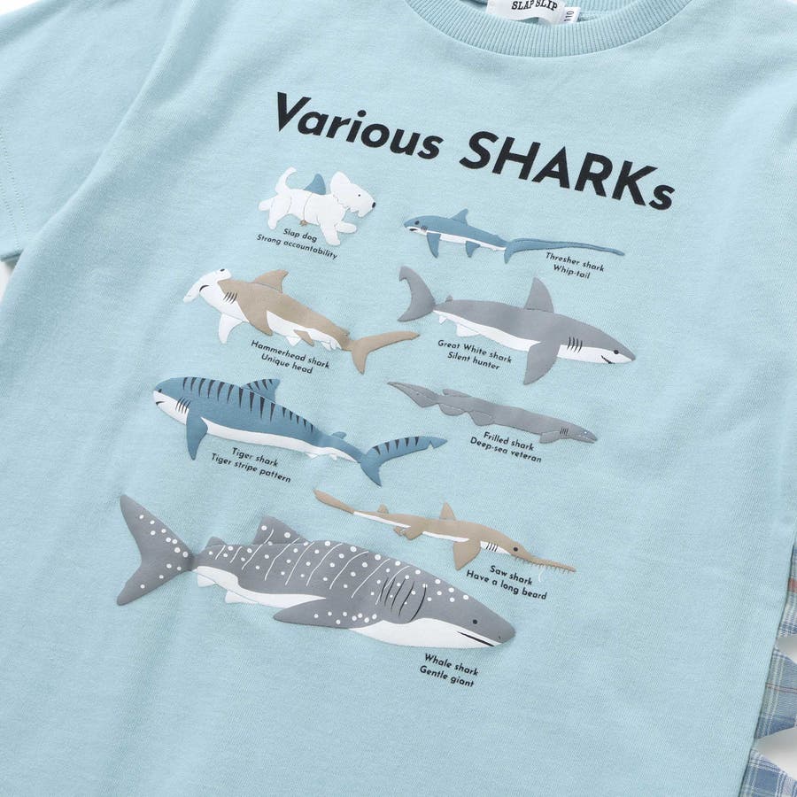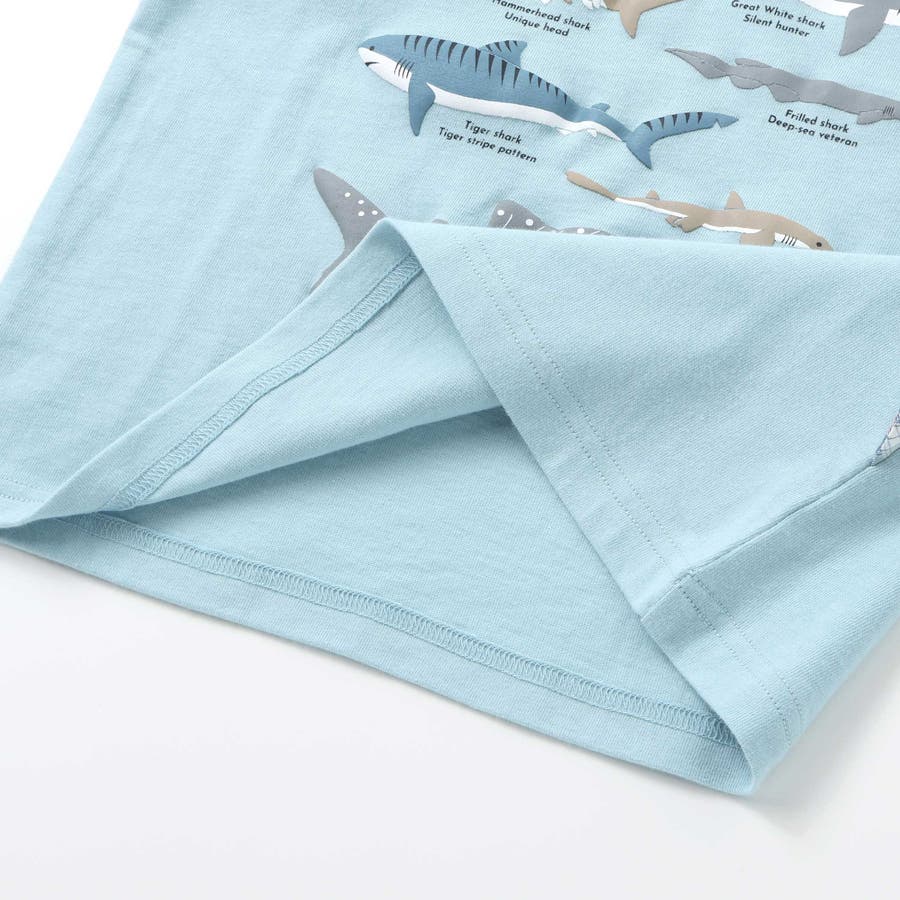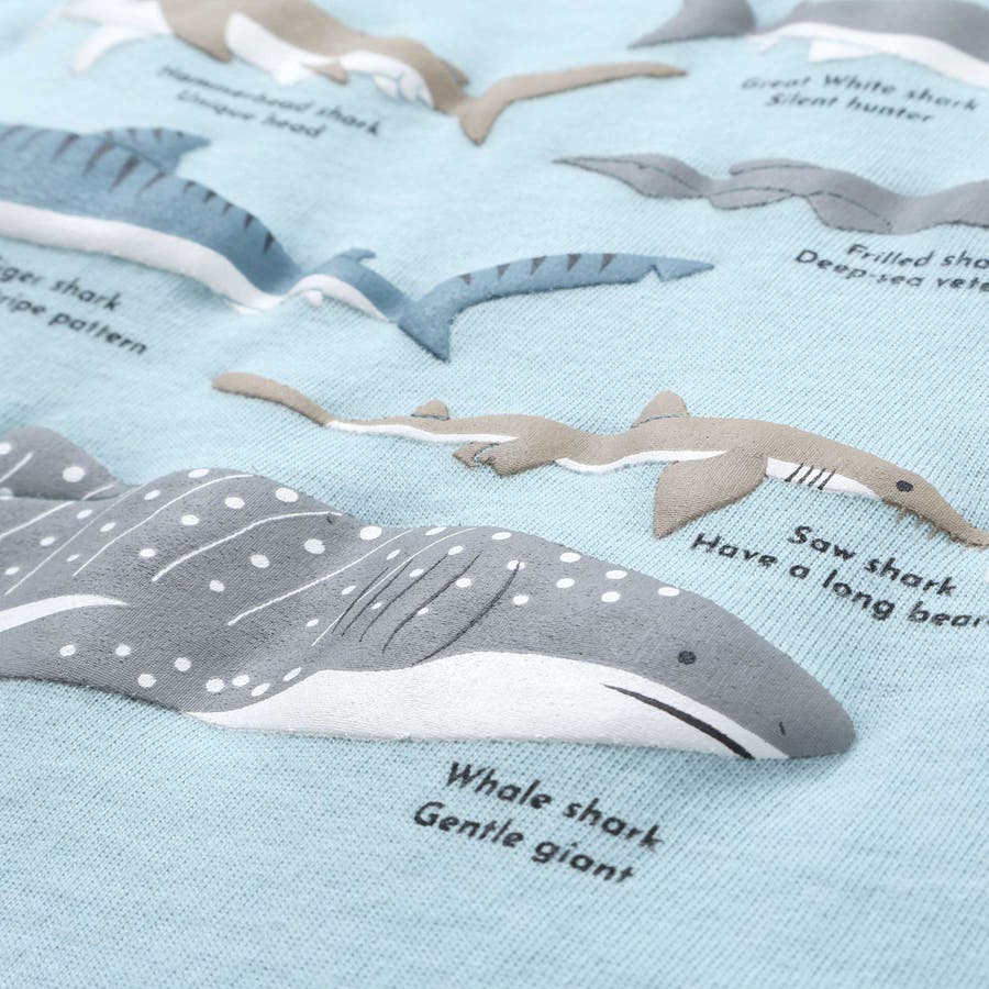 【吸汗速乾】恐竜サメ図鑑風発泡プリントTシャツ(80~130cm)