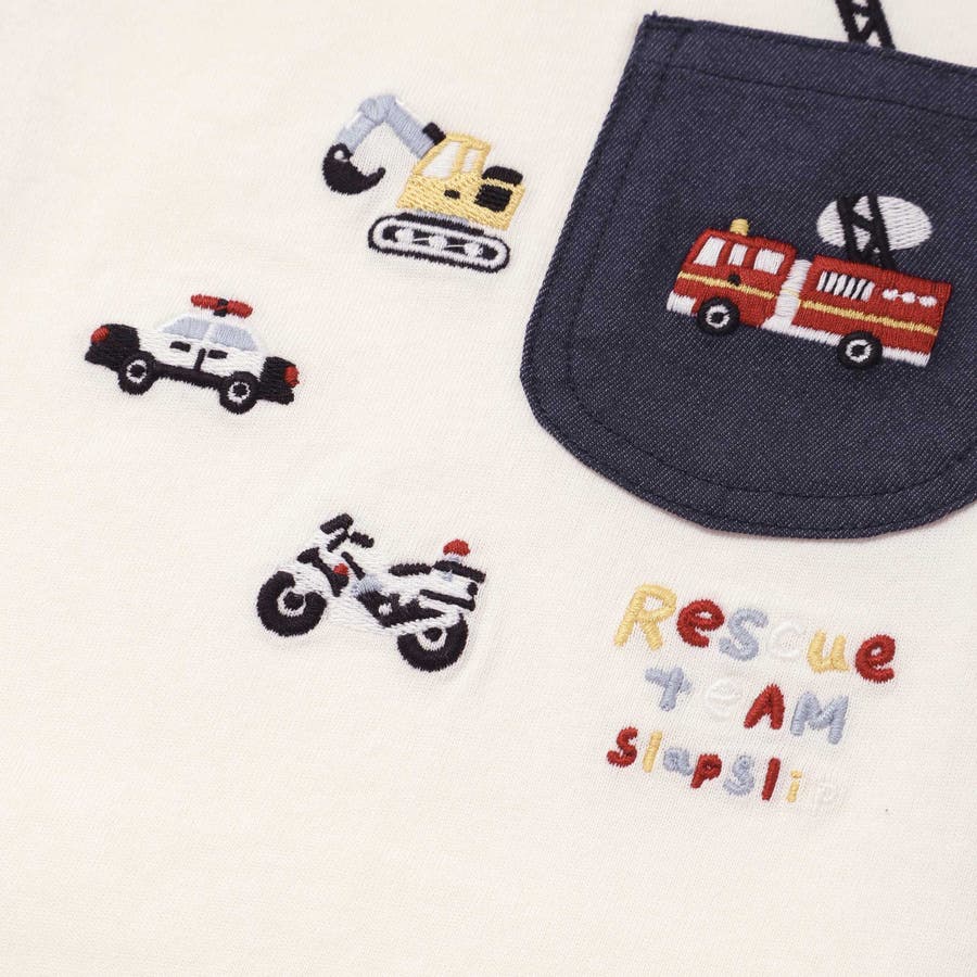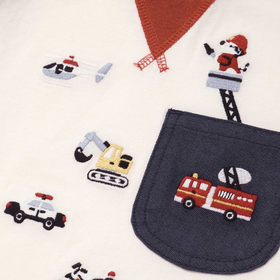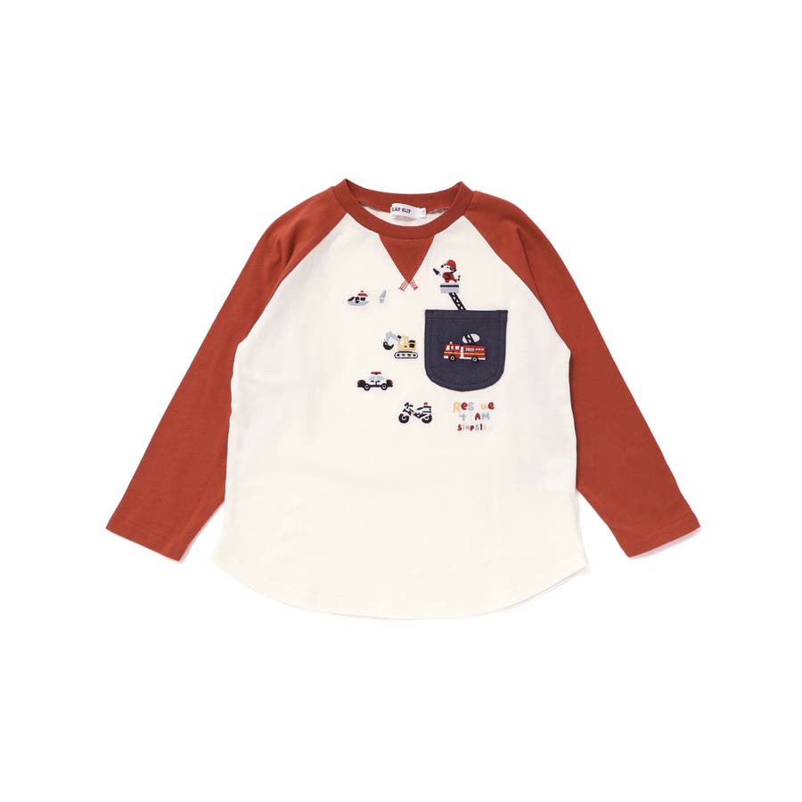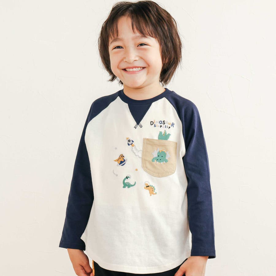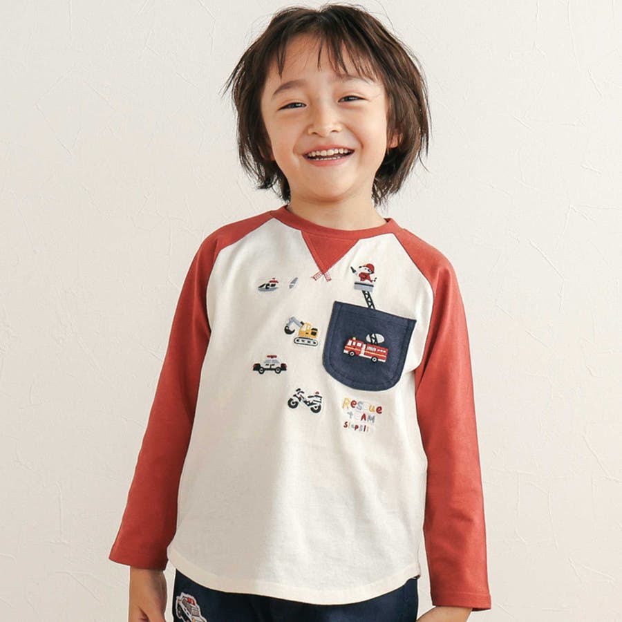 【お揃い】はたらくくるま恐竜刺しゅう胸ポケット付きラグランTシャツ(80~130…