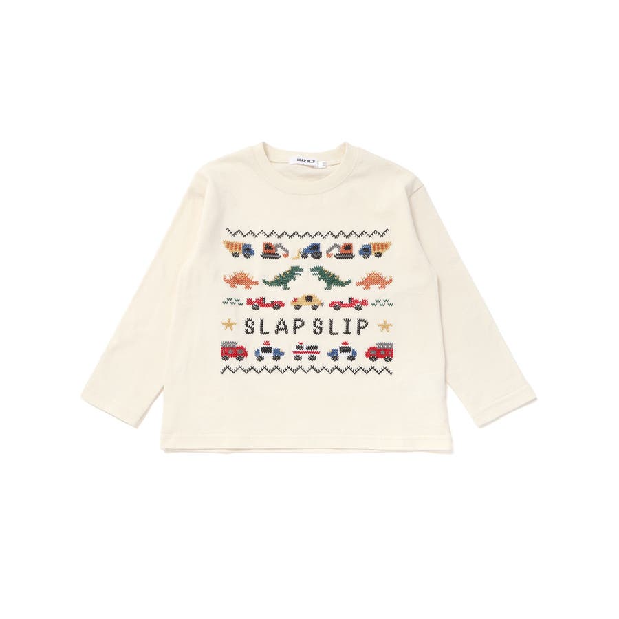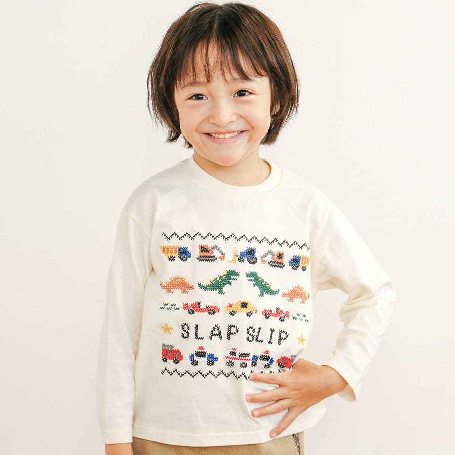 はたらくくるま恐竜ステッチ刺しゅうTシャツ(80~130cm)