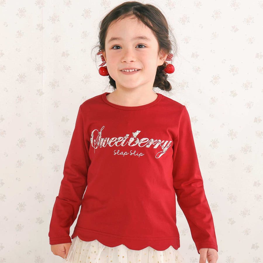 雲やお花みたいなモクモクかわいいスカラップのデザインが女の子らしい長袖Tシャツ。