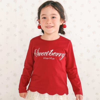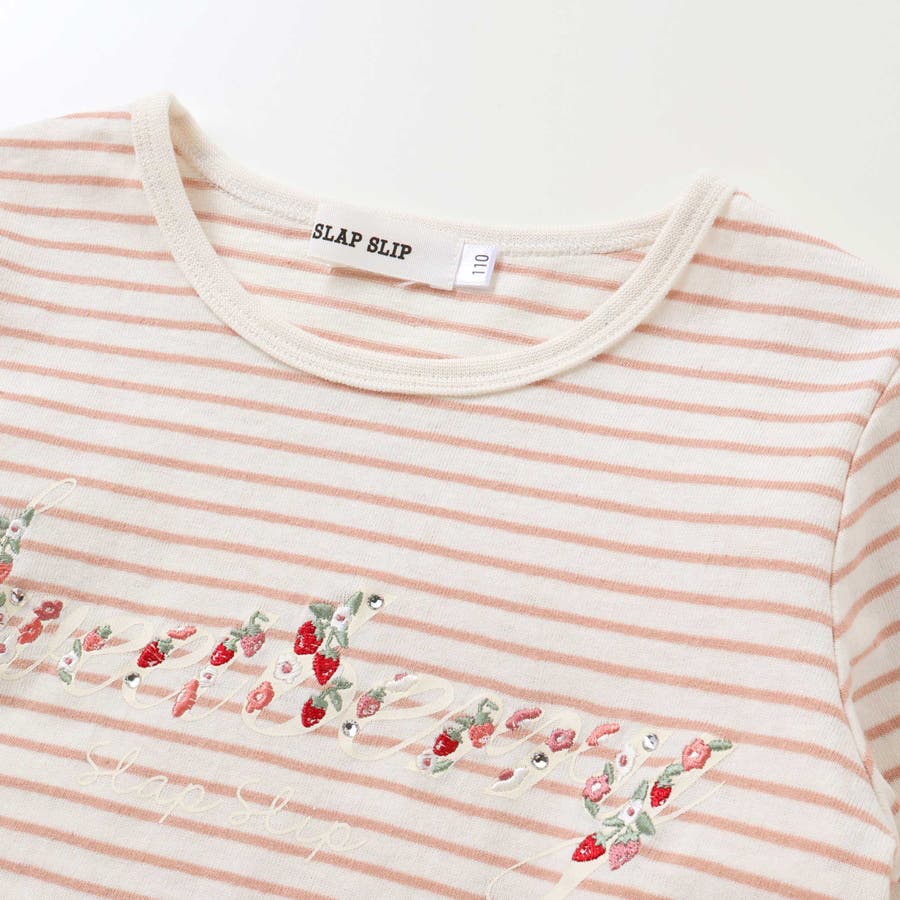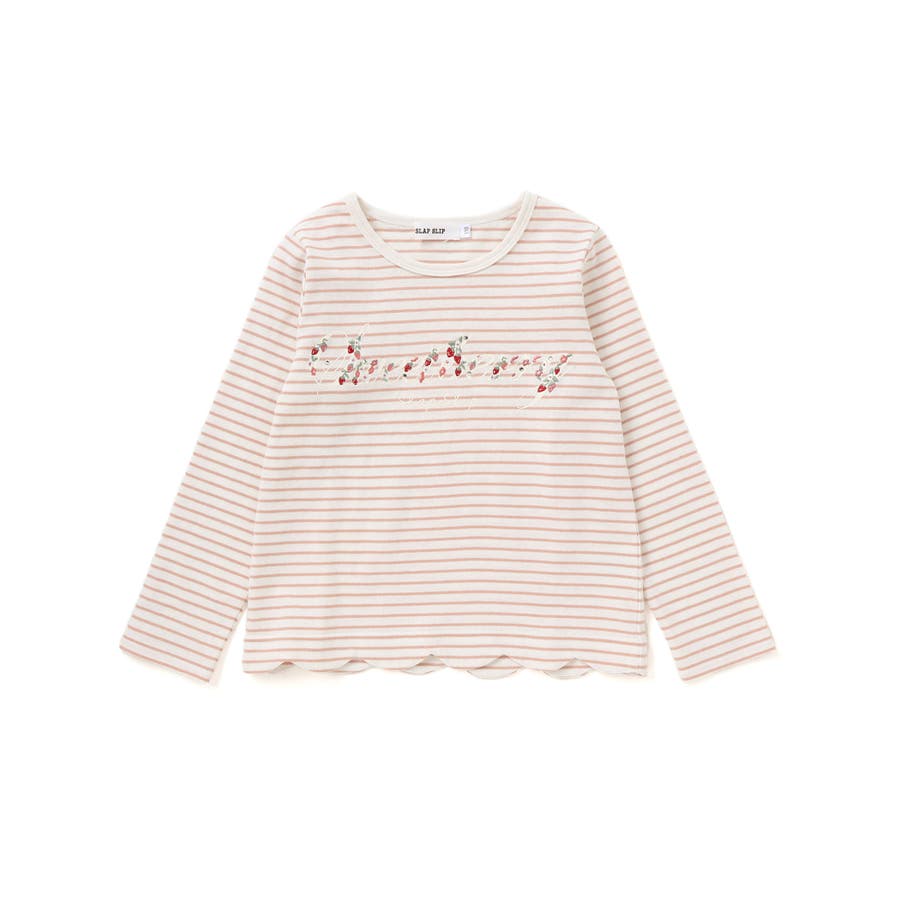 無地ボーダーイチゴ花刺しゅう裾スカラップTシャツ(80~130cm)