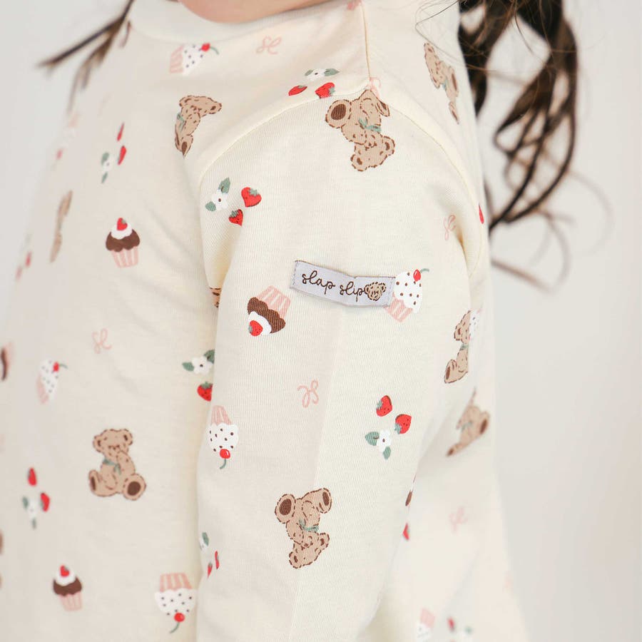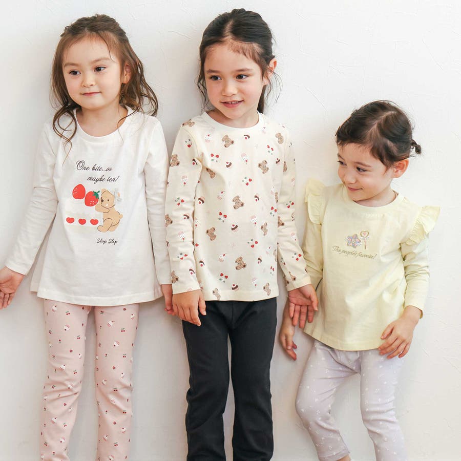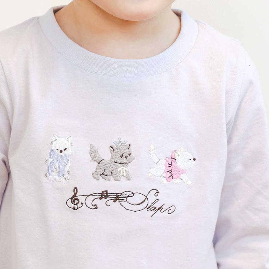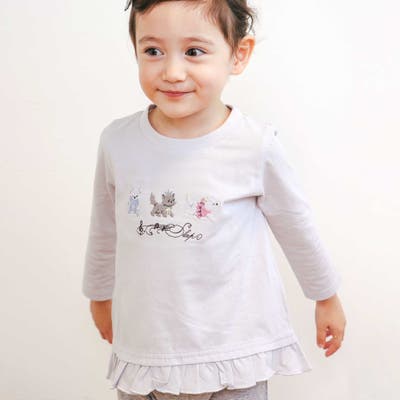 | カラー | オフ×犬刺しゅう×裾フリル / 薄パープル×猫刺しゅう×裾フリル / イエロー×魔法刺しゅう×肩フリル / ピンク×うさぎピアノ×肩フリル / ホワイト×くまケーキ / ネイビー×いちごチェリー総柄 / クリーム×くまカップケーキ総柄 / ドレミピンクボーダー×花ししゅう |