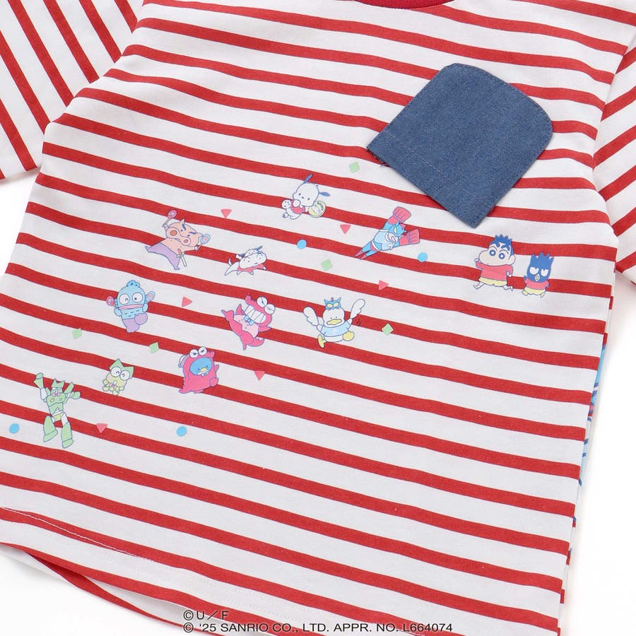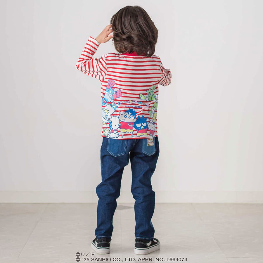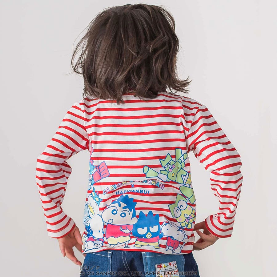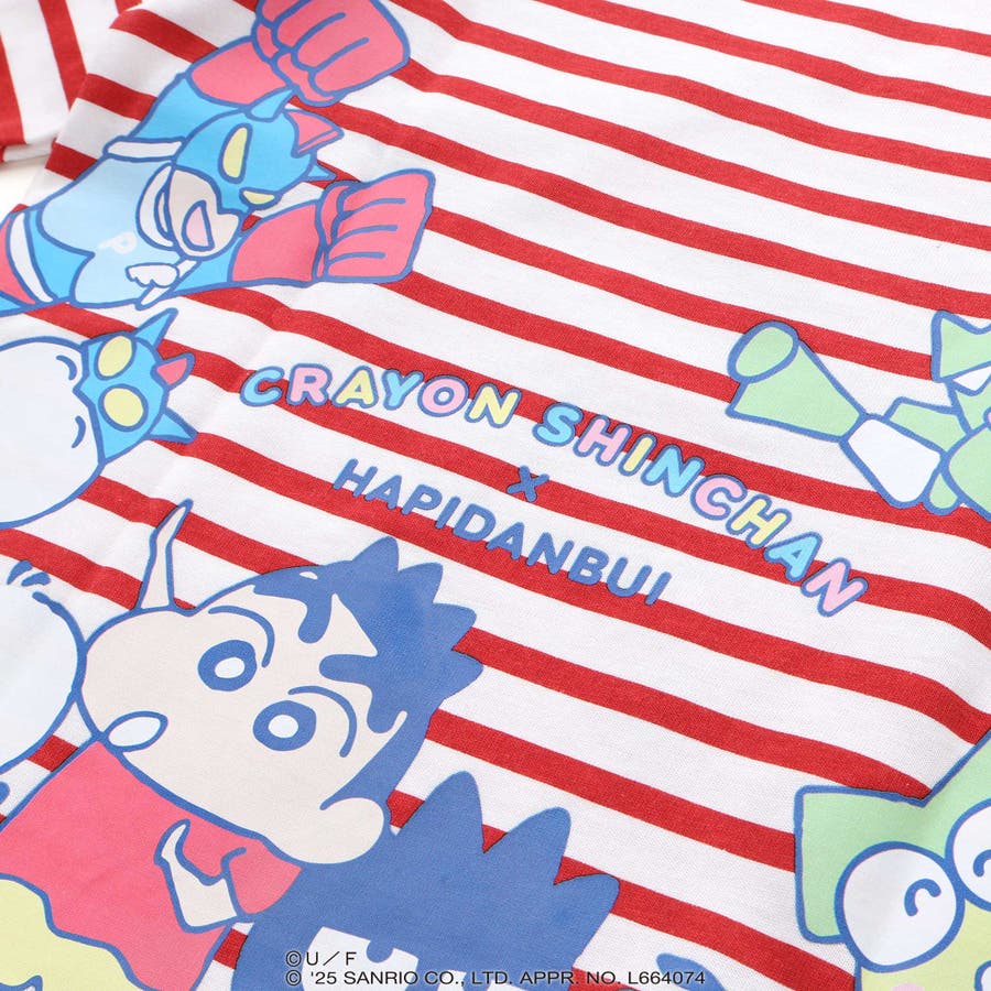 さらにバックプリントには、“はぴだんぶい”のメンバーたちがしんちゃんたちの衣装を着たり、モチーフを身につけてたり、大集合!