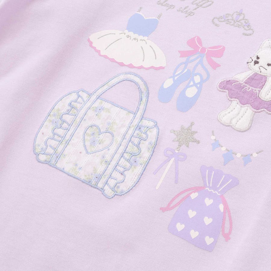 パープルは、王冠にひらひらしたチュチュを身にまとったバレリーナ風のネコと、ハートにフリルを添えたバッグのパッチがポイントで、バレエシューズなどを組み合わせた上品で夢のあるデザインに仕上げました。
