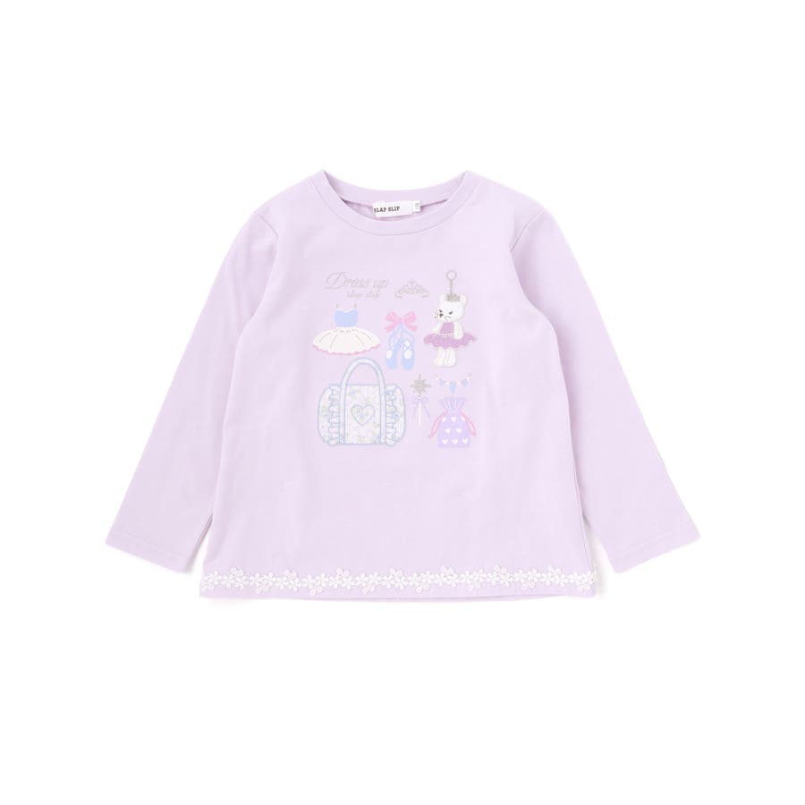 裾レースパッチ刺しゅう天竺長袖Tシャツ(80~130cm)