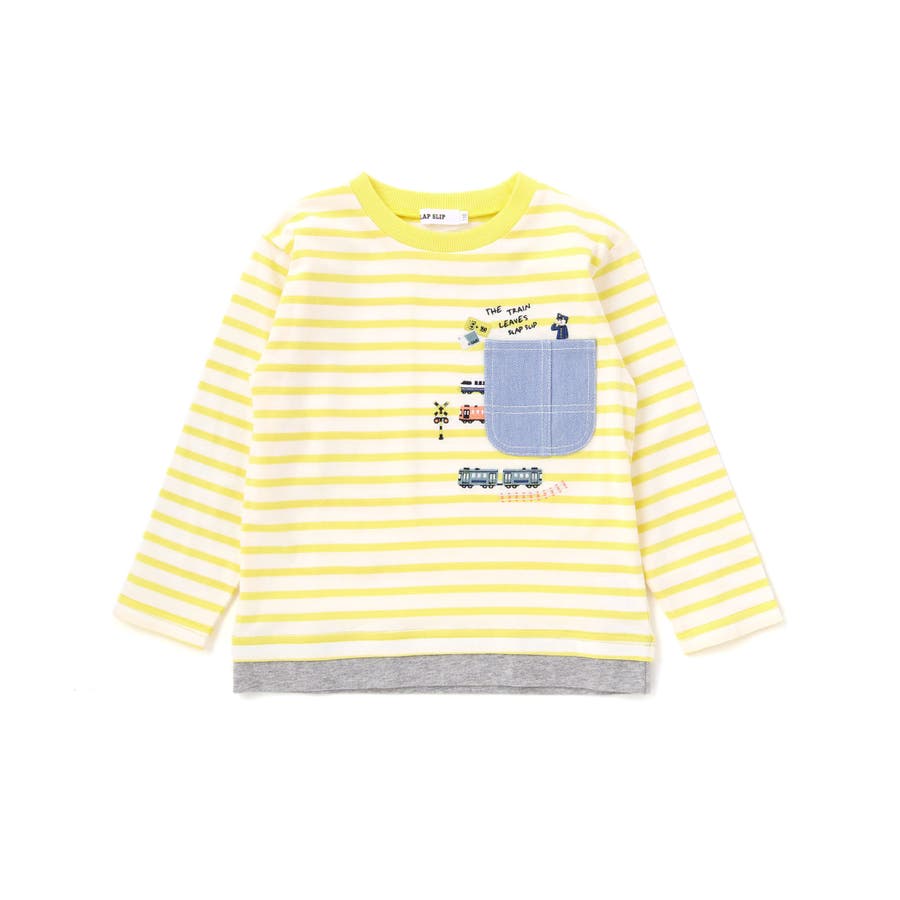 レイヤード風デニムポケット天竺長袖Tシャツ(80~130cm)