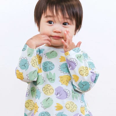 | カラー | くすみベージュ×にほんのごはん / ライム×めがねアニマル / オフ×恐竜バッグ / ネイビー×ワニ恐竜消防車 / オフ×はたらくくるま虹総柄 / ミント×恐竜ドット総柄 / ネイビー星ボーダー×胸ポケット / 黒ボーダー×のりもの×胸ポケット |