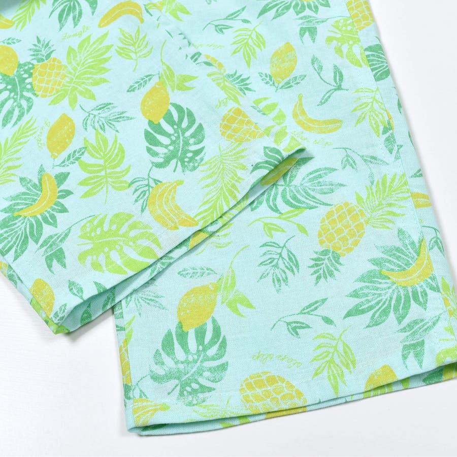 フルーツ柄のブルー系とサファリ柄のグリーン系の2色展開です。