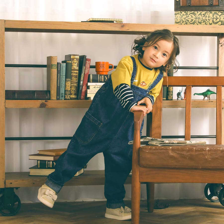 バックプリントハイウエスト風デニムサロペット(80~120cm)