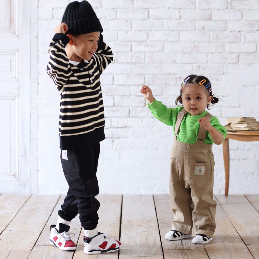 ストレッチ素材を使用しているのでアクティブなキッズのお着替えはもちろん、何でも自分でやりたいキッズも自分でお着替えしやすいアイテム。